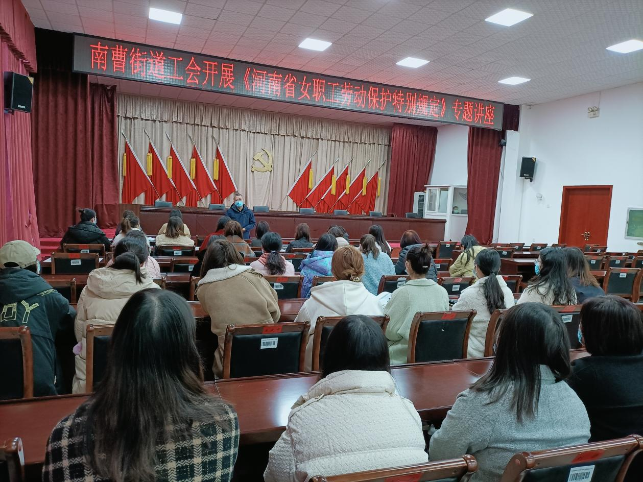 2021年11月1日是《河南省女职工劳动保护特别规定》(以下简称《特别规定》)颁布实施三周年。为进一步推动《特别规定》的贯彻落实,营造用人单位和广大女职工学法、知法、守法、用法的良好氛围,切实实现好、维护好女职工合法权益和特殊利益,按照郑州市、管城区总工会工作安排,南曹街道工会开展“情系女职工 关爱暖人心”为主题的《特别规定》实施三周年专题宣讲活动。