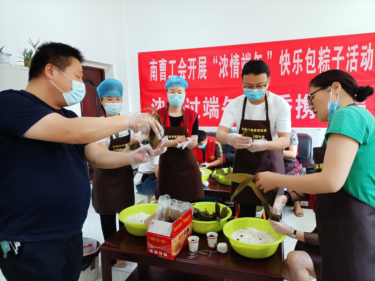端午节是我国传统民俗节日,为弘扬民族优秀传统文化,在机关职工中营造传统节日的良好氛围。南曹街道办事处工会联合街道社工站组织开展“浓情端午,粽香携祝福”快乐包粽子活动。