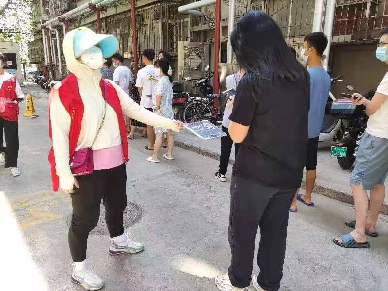 “没有做核酸的抓紧下楼做核酸了”,工会志愿者拿着喇叭在小区里一遍一遍地转,提醒居民下楼进行核酸检测,保证不漏一人;“拿到快递后记得回家做好消毒”,工会志愿者一次次提醒在门口取快递的居民做好消毒、保障自身安全;“奥密克戎变异株在短时间内能快速传播,只有反应及时迅速,以快制快,尽早通过核酸检测筛查出阳性感染者并采取管控措施,才能阻止病毒传播链延长,避免传染更多人”,在遇到居民抱怨天天做核酸“嗓子都捅出老茧了”时,工会志愿者耐心地解释着……