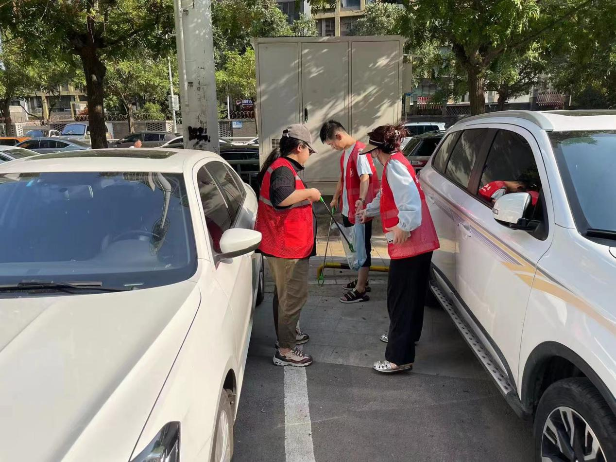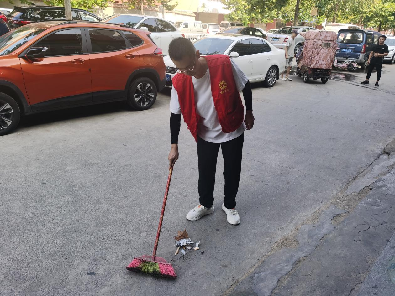 活动现场,志愿者们通过向辖区职工群众分发传单,耐心地讲解环境卫生的重要性,以及乱堆乱放对道路安全的的危害性,希望大家外出不要乱扔果皮纸屑,尽量整齐规范的停放共享单车和电动车。遇到私家车车窗未关闭的也会及时打电话进行提醒。同时清理了路面卫生死角和草丛内的垃圾杂物以及墙面和电线杆上的小广告。尽管天气炎热,汗水湿透了大家的衣服,但是志愿者们的工作热情依然饱满,不怕脏不怕苦不怕累,只希望能通过自己的小小行动,让身边更多的人养成良好的卫生习惯,共同爱护我们的生活环境。