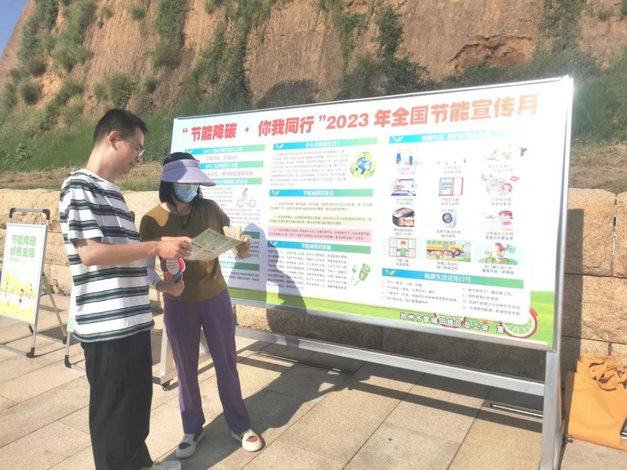 为深入学习贯彻党的二十大精神和习近平生态文明思想,落实好公共机构节能宣传月要求,引导广大干部职工践行绿色低碳生活方式,8月4日上午,管城区总工会开展“节能降碳 你我同行”宣传活动。