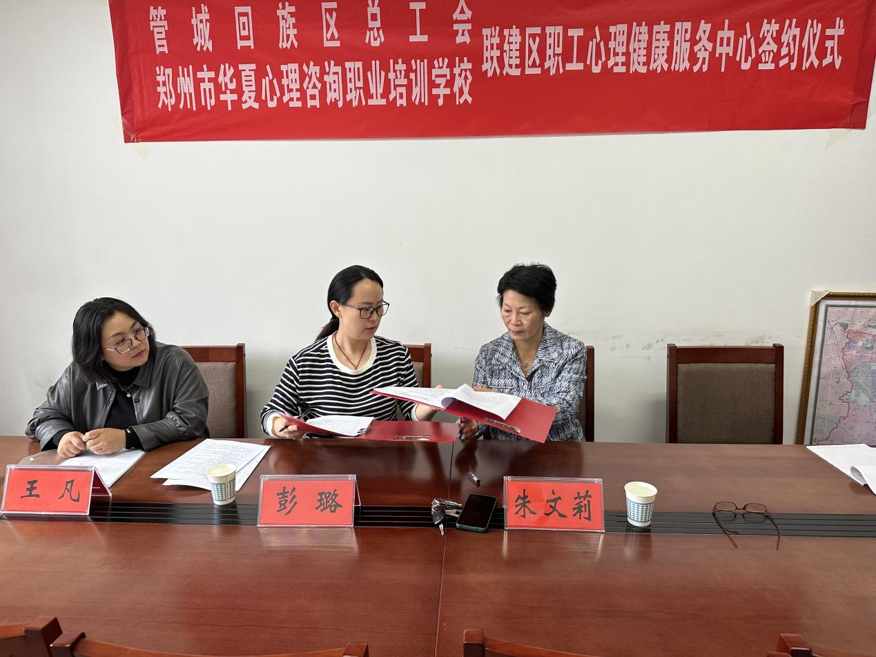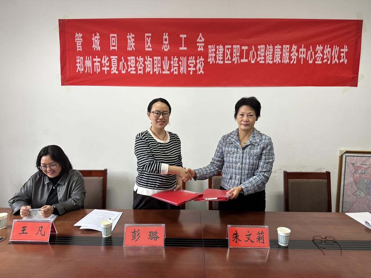 9月27日下午,管城区总工会与郑州市华夏心理咨询职业培训学校举行联建区职工心理健康服务中心签约仪式。