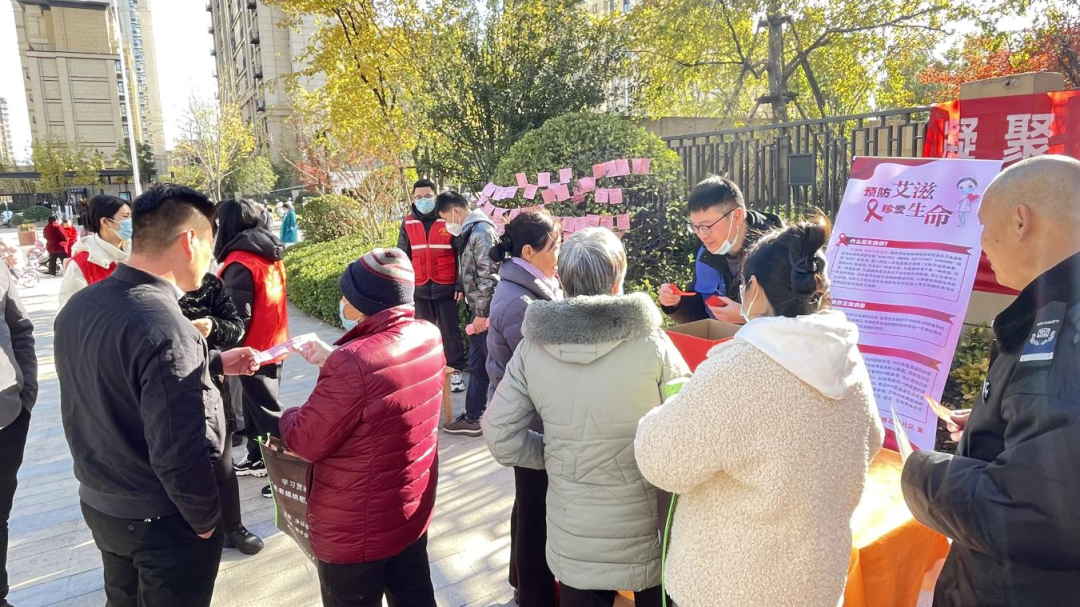 12月1日上午,管城区南曹街道工会联合会绿地花语社区、南曹卫生院在绿地花语社区盈翠苑开展了“凝聚社会力量,合力共抗艾滋”主题宣传系列活动。