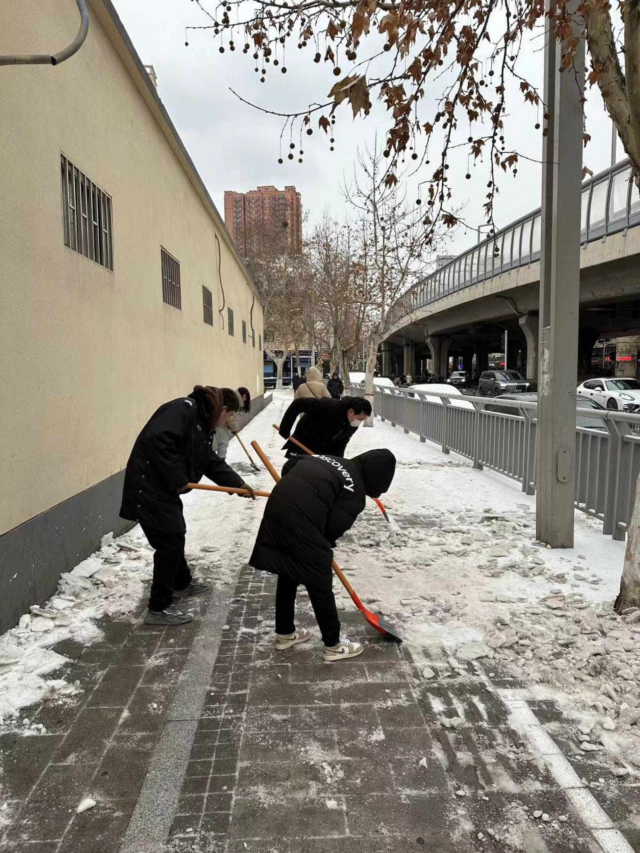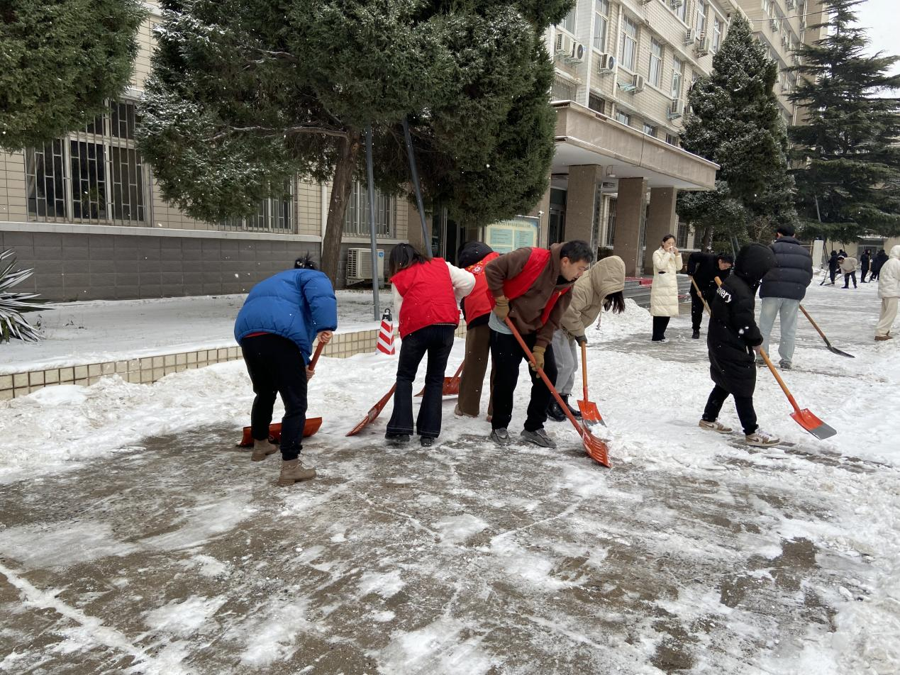 近日,郑州普降大雪,道路积雪结冰严重,给群众出行带来极大不便,为维护正常生产生活秩序,保障广大群众出行安全,2月21日,区总工会组织干部职工在陇海路段、电专3号楼前开展清雪除冰志愿服务活动。