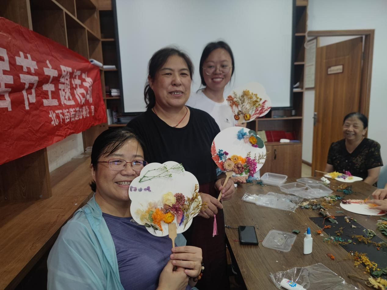 创作过程中,大家将干花轻轻放在洁白的扇面上,细心调整位置并固定。不久之后,一把把由各色干花装扮的精美团扇便呈现在大家眼前,或明艳或素雅,各具特色,韵味十足。不少职工群众迫不及待地拿起团扇拍照记录。现场气氛温馨浪漫,大家说说笑笑,不仅真切感受到了传统文化的魅力,更享受到自由创作的美好时光。此次活动促进了职工群众之间的互动交流,增进了职工群众之间的感情。