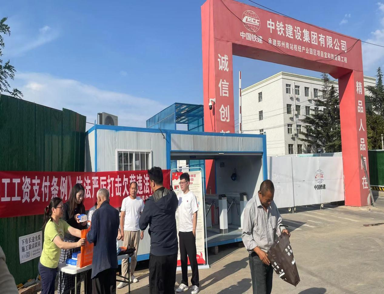 为深入贯彻落实《保障农民工工资支付条例》,进一步加强保障劳动法律、法规的宣传,9月24日上午管城区南曹街道工会联合退役军人服务站到我辖区中铁建设施工现场开展《保障农民工工资支付条例》普法宣传活动。