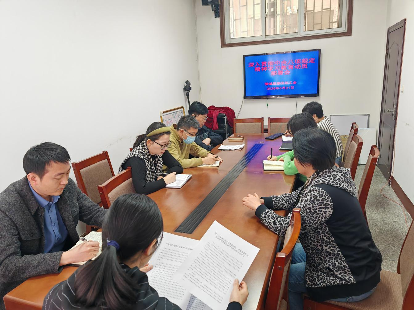 3月21日,管城回族区总工会召开会议,学习贯彻习近平总书记关于深入贯彻中央八项规定精神学习教育的重要指示精神,传达学习中央和省委、市委、区委要求,安排部署区总工会学习教育工作。