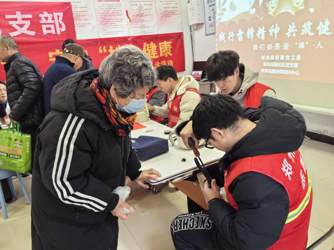3 月 5 日是第 62 个 “学雷锋纪念日”,为进一步传承和弘扬雷锋精神,创新志愿服务形式,切实解决居民生活难题,营造互帮互助的社区氛围。2025 年 3 月 4 日上午,管城区城东路街道工会联合城东路街道党工委及未来花园社区党支部联合开展“践行雷锋精神 共筑健康社区”志愿服务活动,吸引了众多辖区居民热情参与。