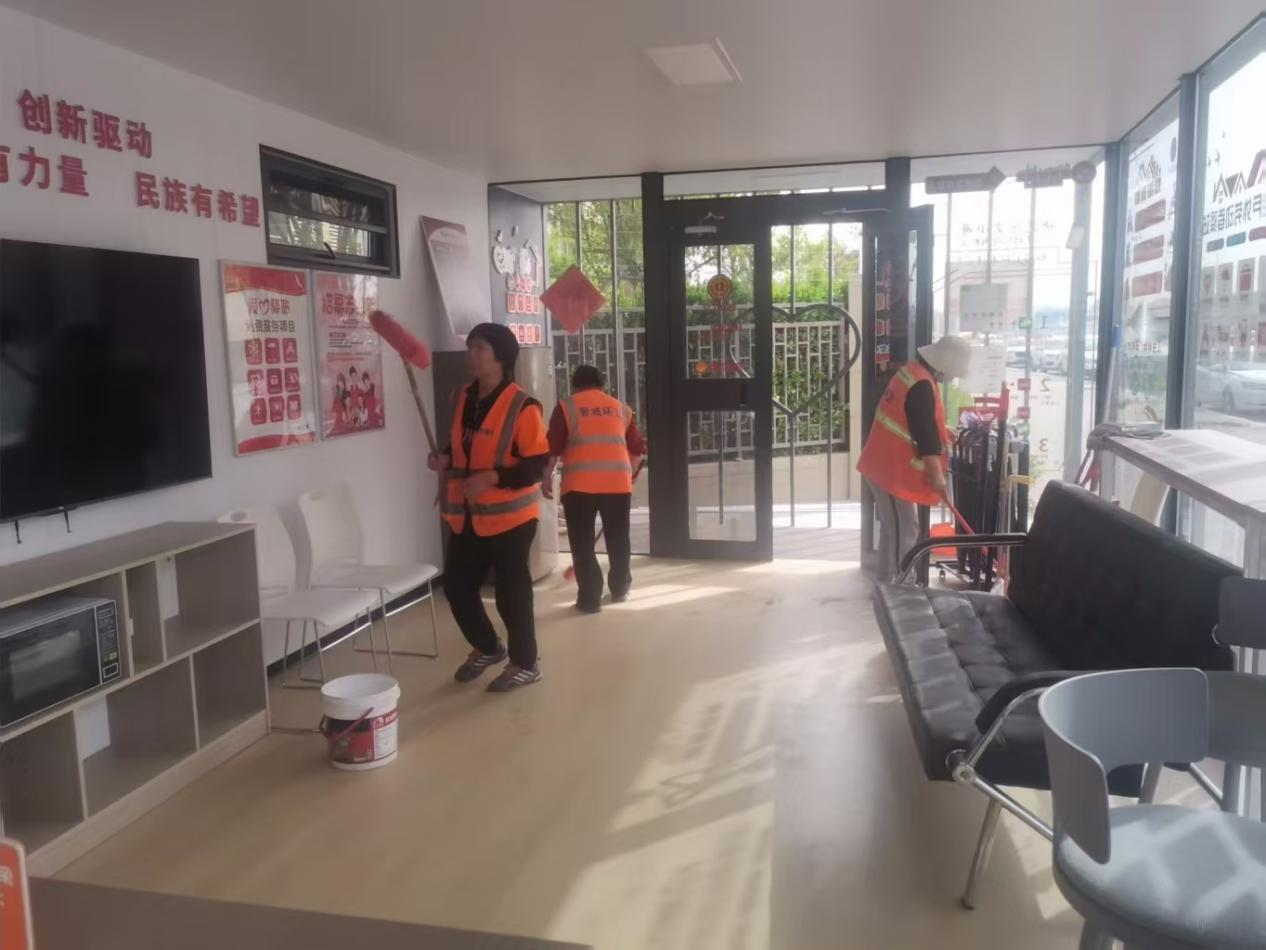活动当天,8名志愿者准时集合,进行了简单的分工后便迅速投入到打扫工作中。大家充分发挥不怕脏、不怕累的精神,有的负责清扫地面,有的擦拭桌椅和窗户,还有的对驿站内的物品进行整理和归位。经过几个小时的努力,驿站的面貌焕然一新,原本杂乱的角落变得整洁有序,地面干净发亮,桌椅一尘不染。