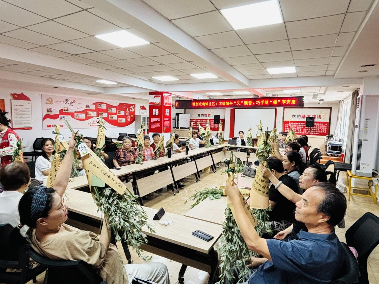 “艾草挂门楣,百病不进门。”活动伊始,社区工作人员以端午习俗为切入点,讲述艾草在端午节中的文化寓意——驱邪避毒、祈福安康。职工们围坐一堂,手持新鲜艾草、菖蒲等材料,在老师指导下将传统习俗转化为指尖艺术。一捆捆艾草花束错落有致,搭配“端午安康”祝福卡,既保留了驱邪纳福的古意,又融入现代审美,成为职工手中独特的“端午礼物”。