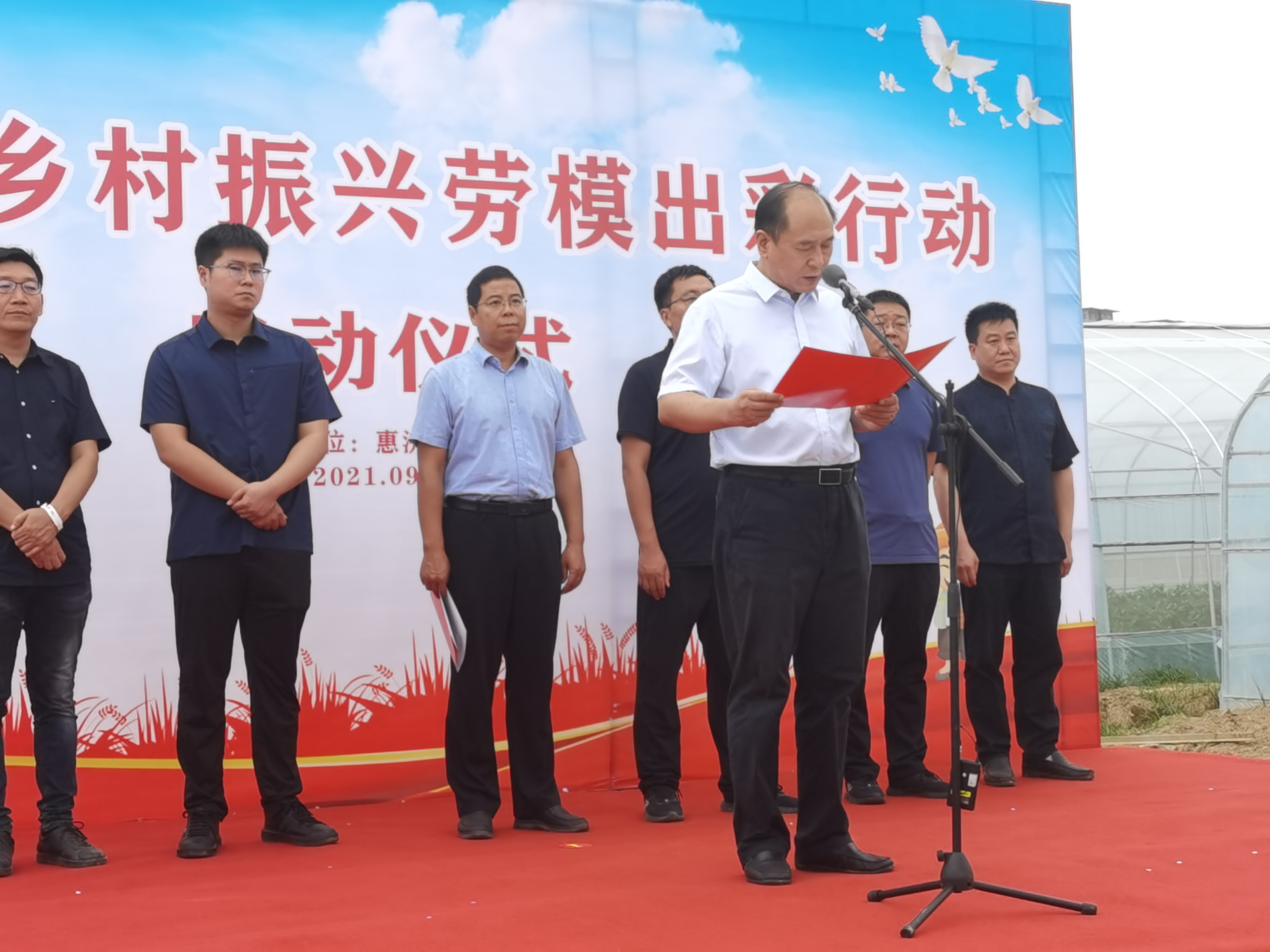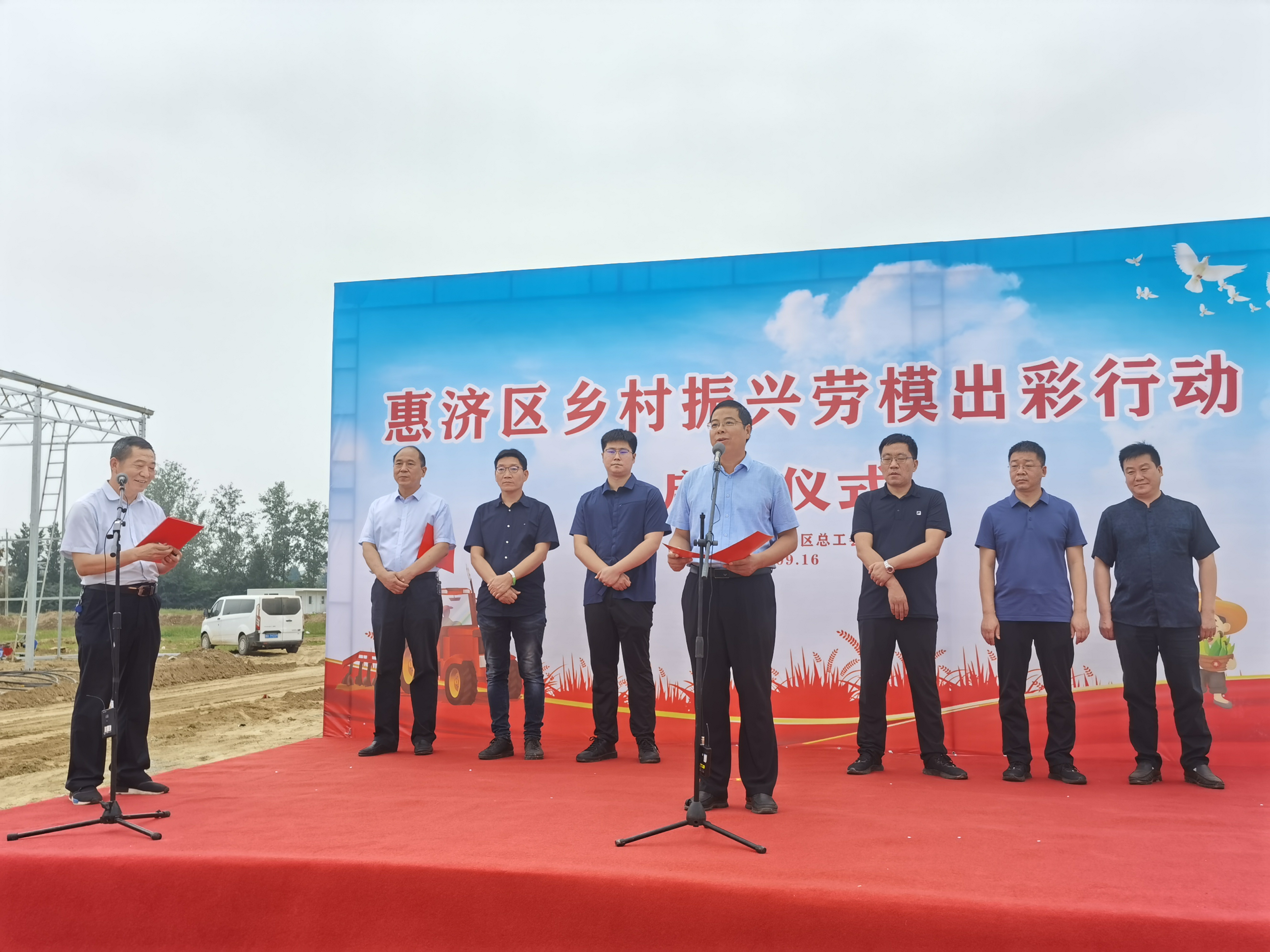 为贯彻落实市总工会《乡村振兴劳模出彩行动专案》,进一步动员全区劳模先进和职工群众弘扬劳模精神,助力乡村振兴,9月16日下午,惠济区总工会在古荥镇孙庄村欧雅种业基地召开乡村振兴劳模出彩行动启动仪式。区人大常委会副主任、区总工会主席袁加军等领导和全区44名劳模先进、8个先进单位代表以及相关镇(街道)工会领导、11个乡村振兴精品村和示范村党支部书记50余人参加启动仪式。