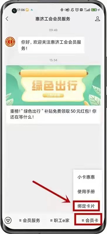 “会员卡”——“绑定卡片”