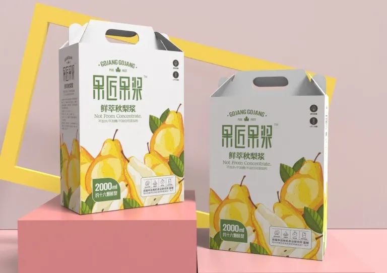 “鲜萃秋梨浆”的包装规格为2000ml/提,采用自带水龙头的盒中袋包装。每袋4斤,相当于12斤鲜梨。