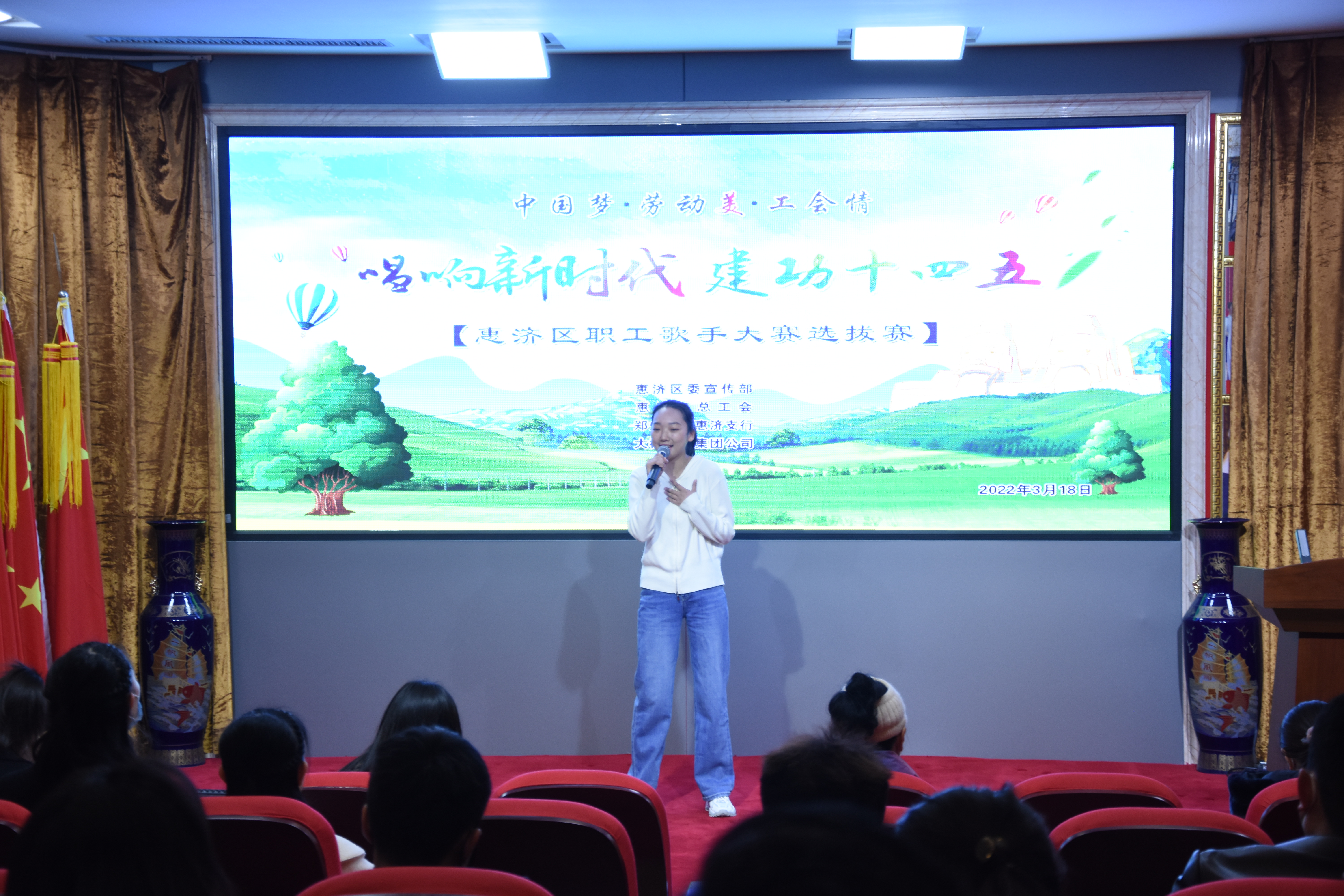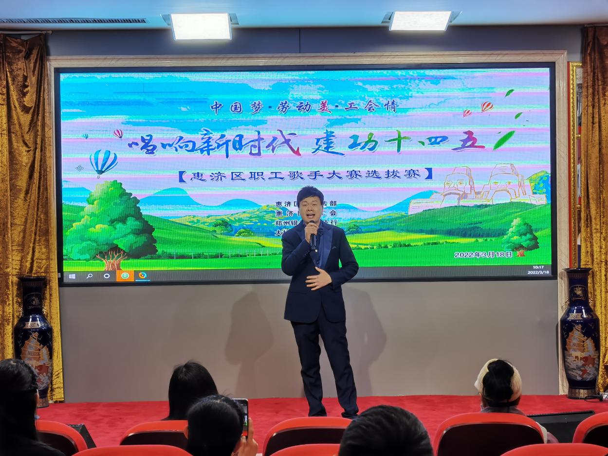 为落实2022年“出彩郑州”系列文艺活动工作部署,继续深化“中国梦·劳动美”、“劳动创造幸福”主题教育,凝聚全市广大职工加快郑州国家中心城市现代化建设、建功“十四五”的磅礴力量,以优异成绩喜迎党的二十大召开,近日,郑州市委宣传部、市总工会联合举办“唱响新时代·建功十四五”郑州市职工歌手大赛。3月18日,惠济区总工会联合区委宣传部、郑州银行惠济支行、大桥石化公司积极开展职工歌手大赛选拔赛。来自全区各行业的38名职工歌手参加比赛,惠济区人大常委会副主任、区总工会主席袁加军参加活动并作赛前动员。
