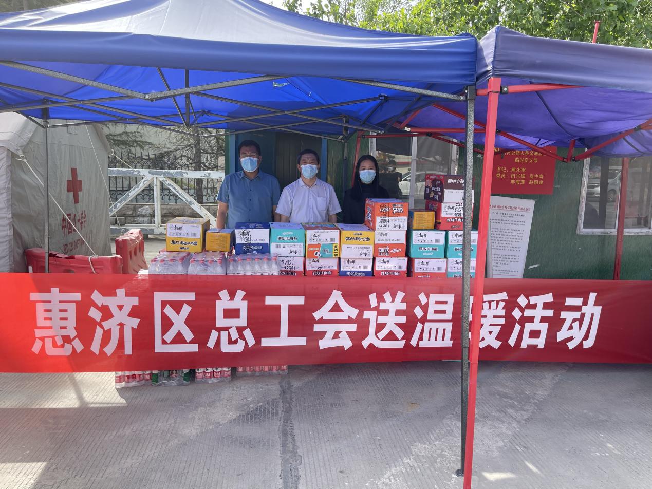 为感谢广大抗疫一线职工的辛勤付出,“五一”国际劳动节前夕,惠济区总工会领导带领机关深入到抗疫一线,看望慰问高速路口值守人员和7个隔离点工作专班人员,为他们送去了方便面、火腿肠、矿泉水、洗漱用品等物资,带去了区委区政府和工会组织的关心关爱。区总工会领导对值守人员的艰苦劳动表示赞赏,对他们舍小家为大家、为疫情防控做出的重要贡献表示感谢。