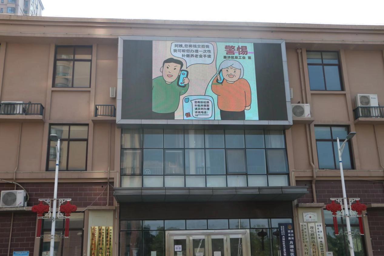 随着暑期到来,市民文娱活动增多,惠济区总工会于7月21日在迎宾木马社区开展防范电信网络诈骗、打击整治养老诈骗宣传教育海报展播活动。