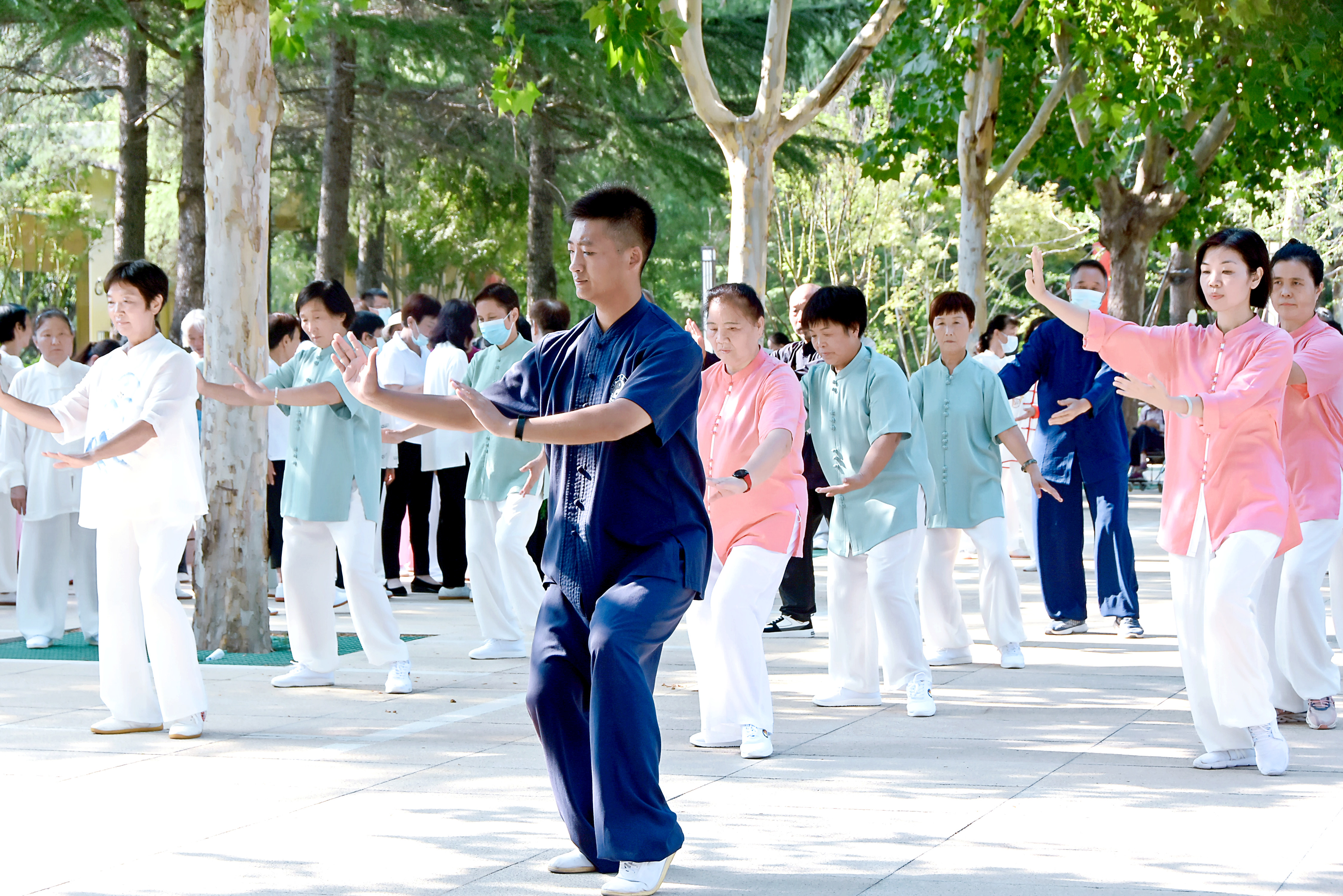 展演中,学员们表演了太极拳和谐十三式、太极拳基础套路十八式等。跟着舒缓的音乐,整齐柔美的动作随之契合,身着白衣汉服的太极爱好者翩翩起舞,整齐划一,一招一式如行云流水,充分展现了昂扬奋进、积极向上的良好精神风貌和太极风姿。学员们纷纷表示通过习练太极拳,精神面貌,身体机能都有了很大改观。