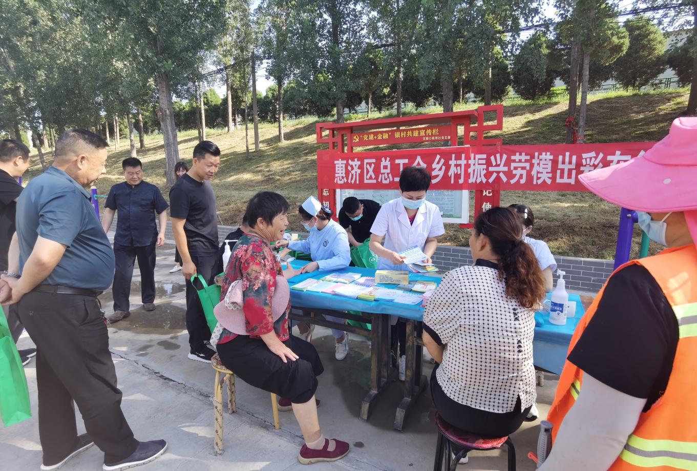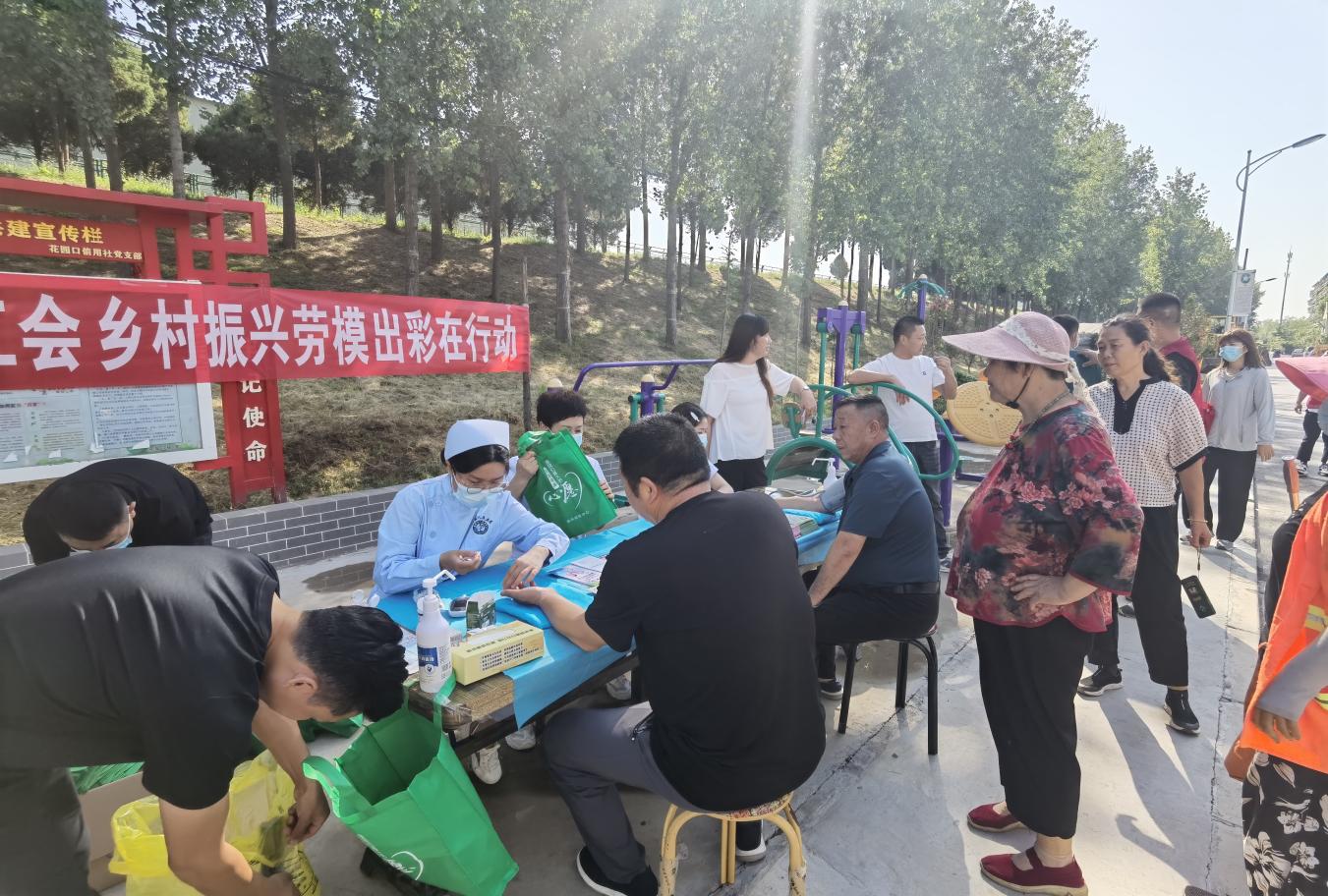 为大力弘扬劳模精神、劳动精神、工匠精神,充分发挥劳模在乡村振兴中的示范引领作用,按照《2021年惠济区乡村振兴劳模出彩行动方案》(惠工办﹝2021﹞59号)文件要求,9月6日上午,惠济区总工会副主席邹玉锦带队付广喜、海仙、牛志军、连子川4位劳模代表,组织区保健办的医疗团队在花园口镇南月堤村开展“弘扬劳模精神·助力乡村振兴”乡村振兴劳模出彩义诊活动,本次活动将工会特色与劳模自身行业特点相结合,旨在让更多社会资源参与乡村振兴活动。