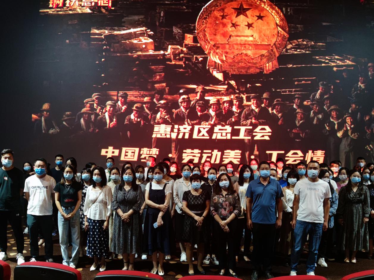 为迎接党的二十大胜利召开,追寻党的红色足迹,9月29日,惠济区总工会开展“中国梦·劳动美·工会情”送电影进基层活动,组织全区基层工会干部职工观看工业题材电影《钢铁意志》。