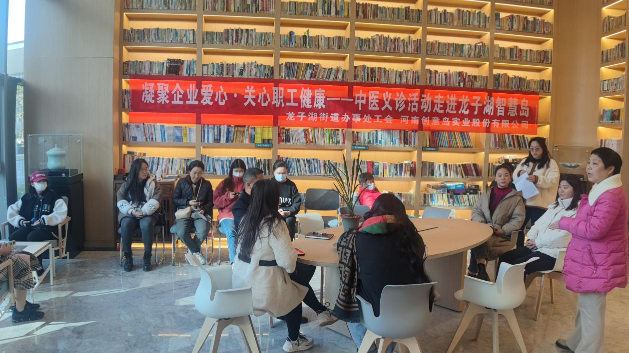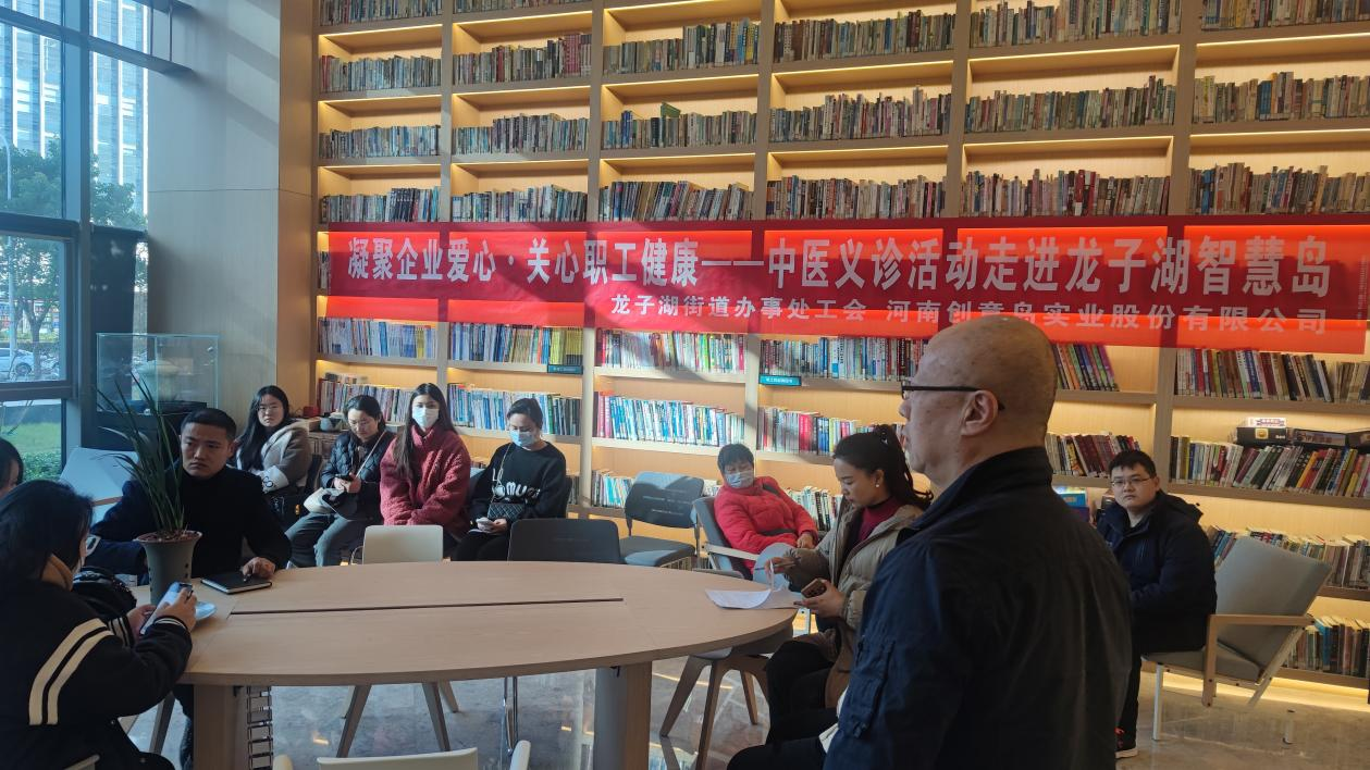 为切实保障职工身心健康,增强职工健康意识,推动中医药文化融入群众生产生活,让职工在工作中享受更多优质服务,引导职工建立健康生活生产方式,11月23日下午,中原科技城、龙子湖办事处工会联动河南创意岛实业股份有限公司在智慧岛大厦图书馆开展中医义诊,为广大职工带来温情的健康服务。