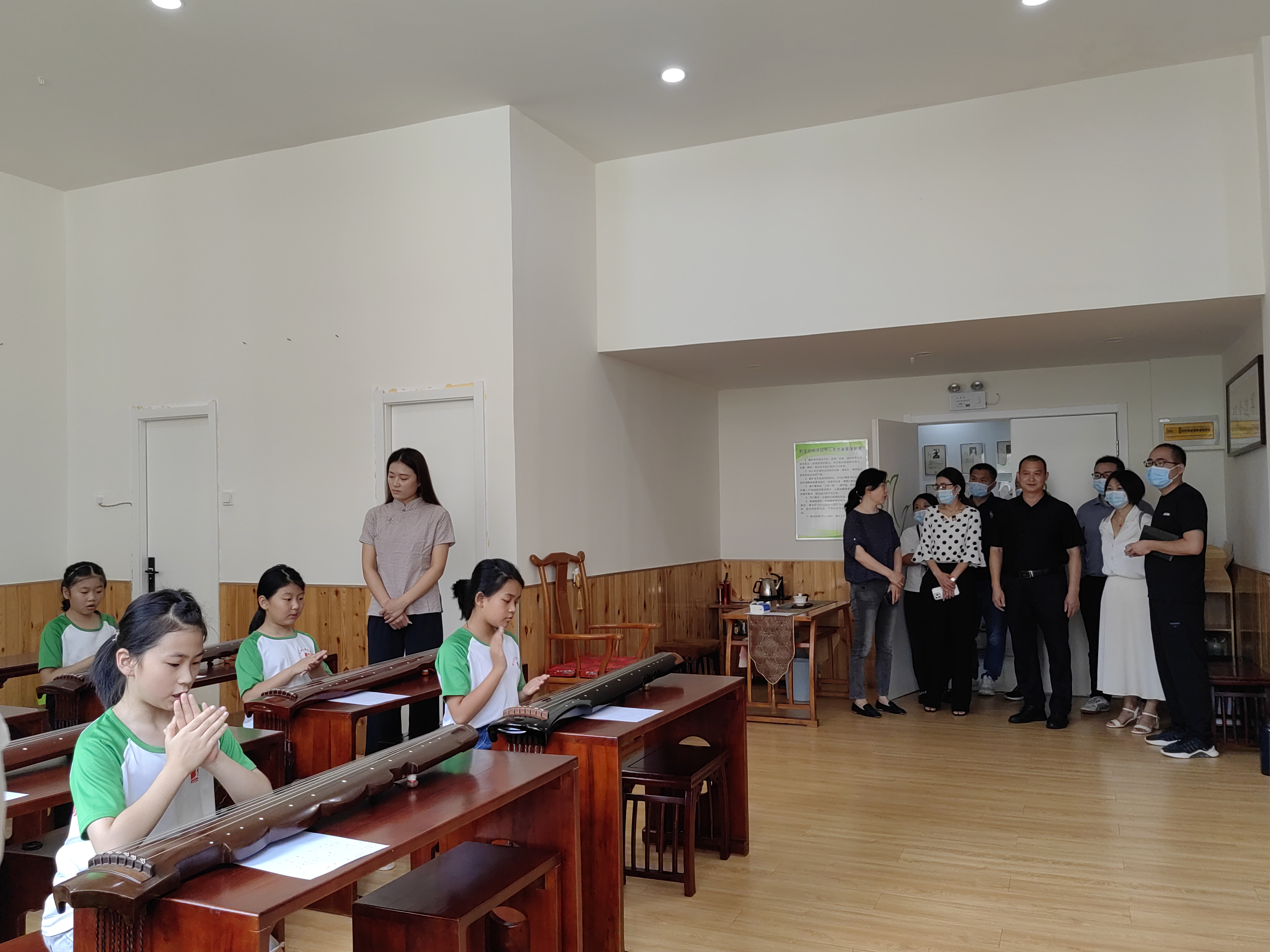 富士康工会调研组一行通过观摩爱心托管班的现场教学、设施陈列、课程规划、往期开展活动剪影等环节,了解到郑州高新区爱心托管班已开设了6年,主要以“国学经典”为特色展开教学,今年暑期开展的课程有:中华礼仪、经典诵读、少儿中医、五禽戏、说文解字、绘画、围棋、古琴等课程,让孩子们寓教于乐、提升素养。