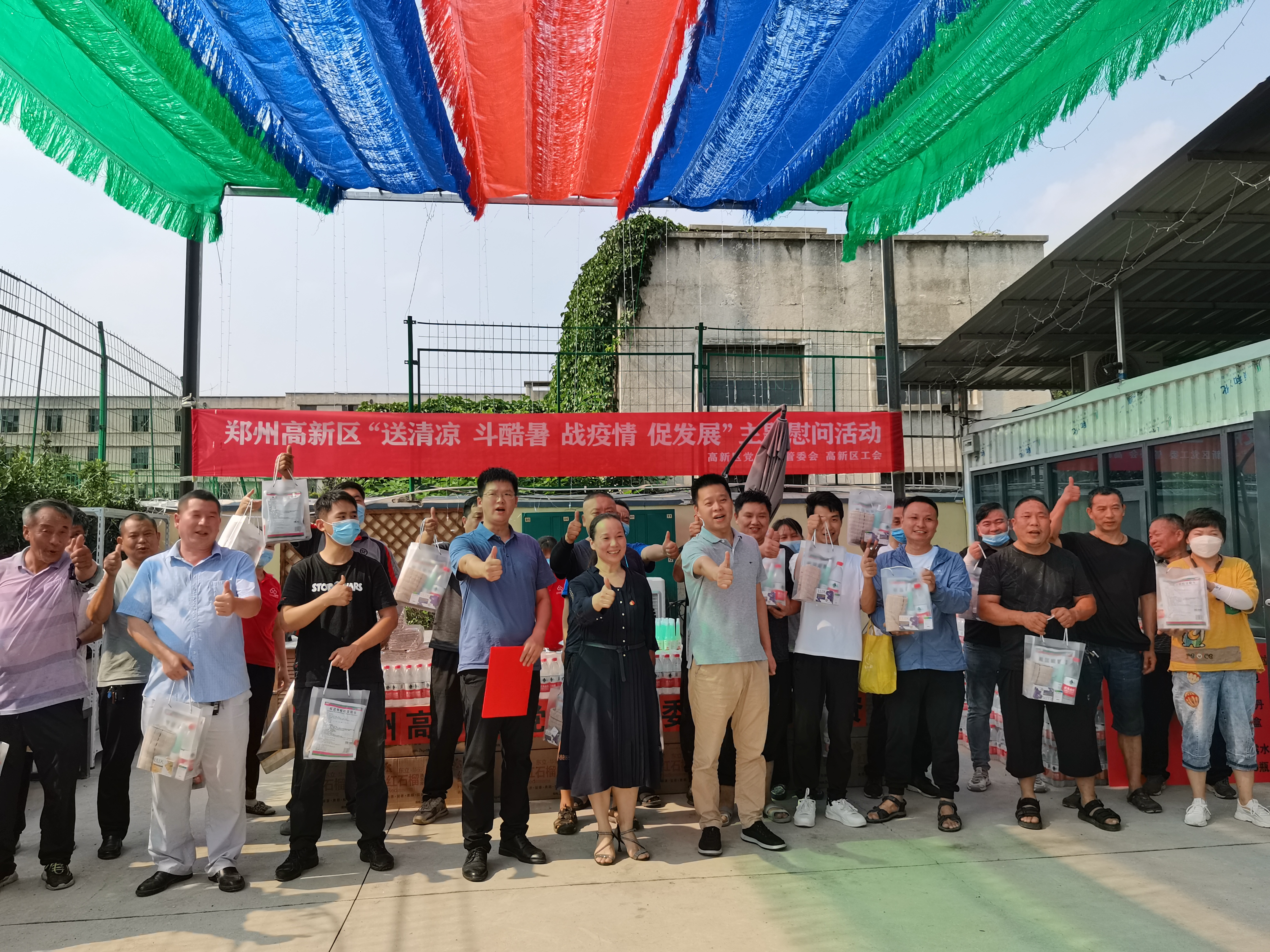 此次慰问对象主要有四类,一是以郑州佛光发电设备股份有限公司为代表的8家重点企业和项目的一线工人,二是以高新环保、高新分局巡特大队、高新区消防救援大队、交警十一支队为代表的7家从事高温作业的特殊行业一线职工,三是以郑州西区中医院为代表的3家疫情防控一线人员,四是以河南云充新能源科技有限公司为代表的9家新业态劳动者。