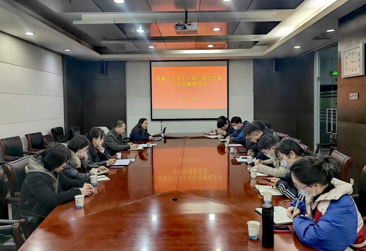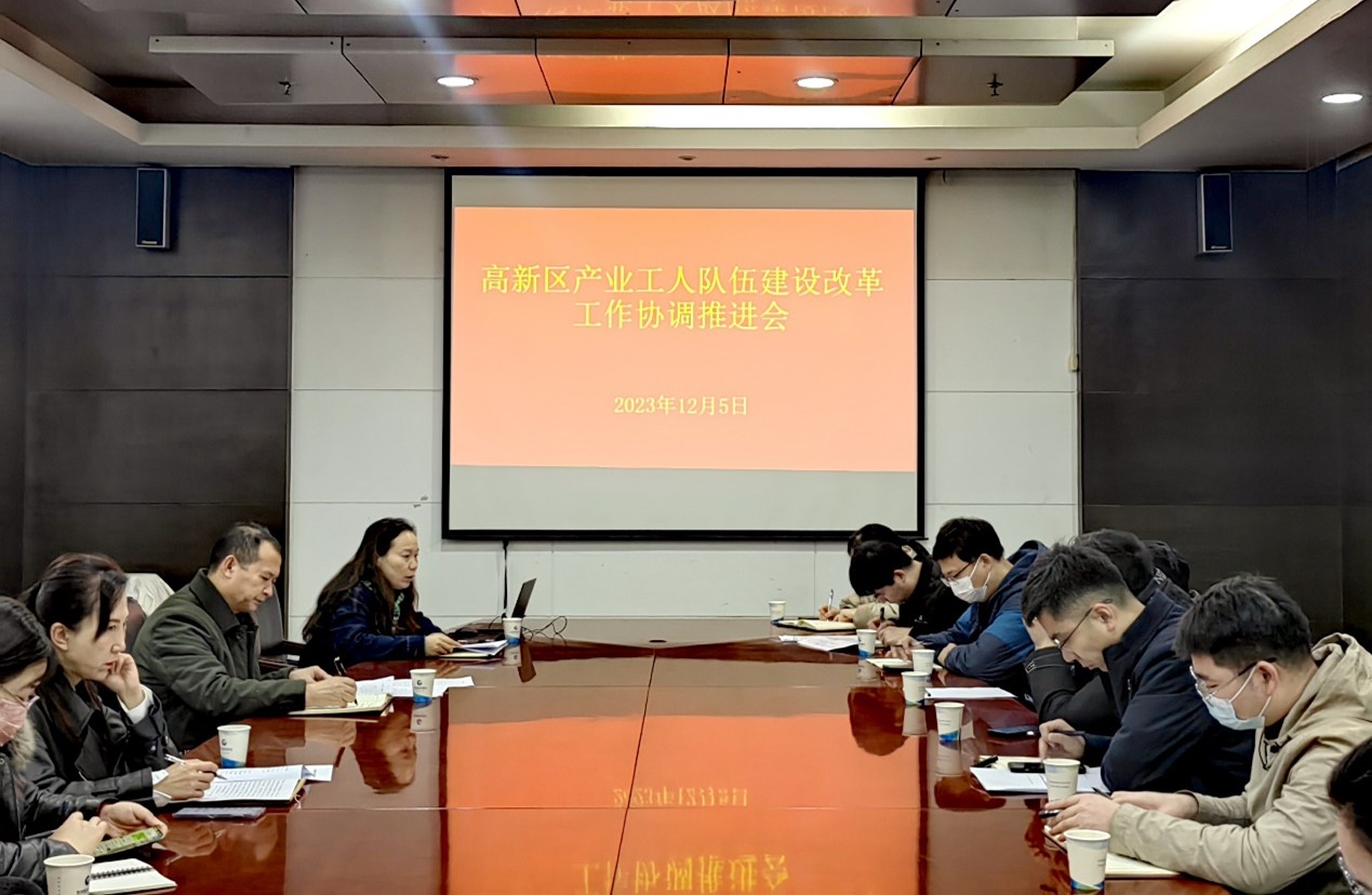 12月5日上午,高新区召开产业工人队伍建设改革工作协调推进会,高新区管委会党群工作部副书记郭广立、各成员单位负责人出席会议。