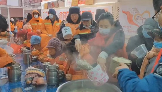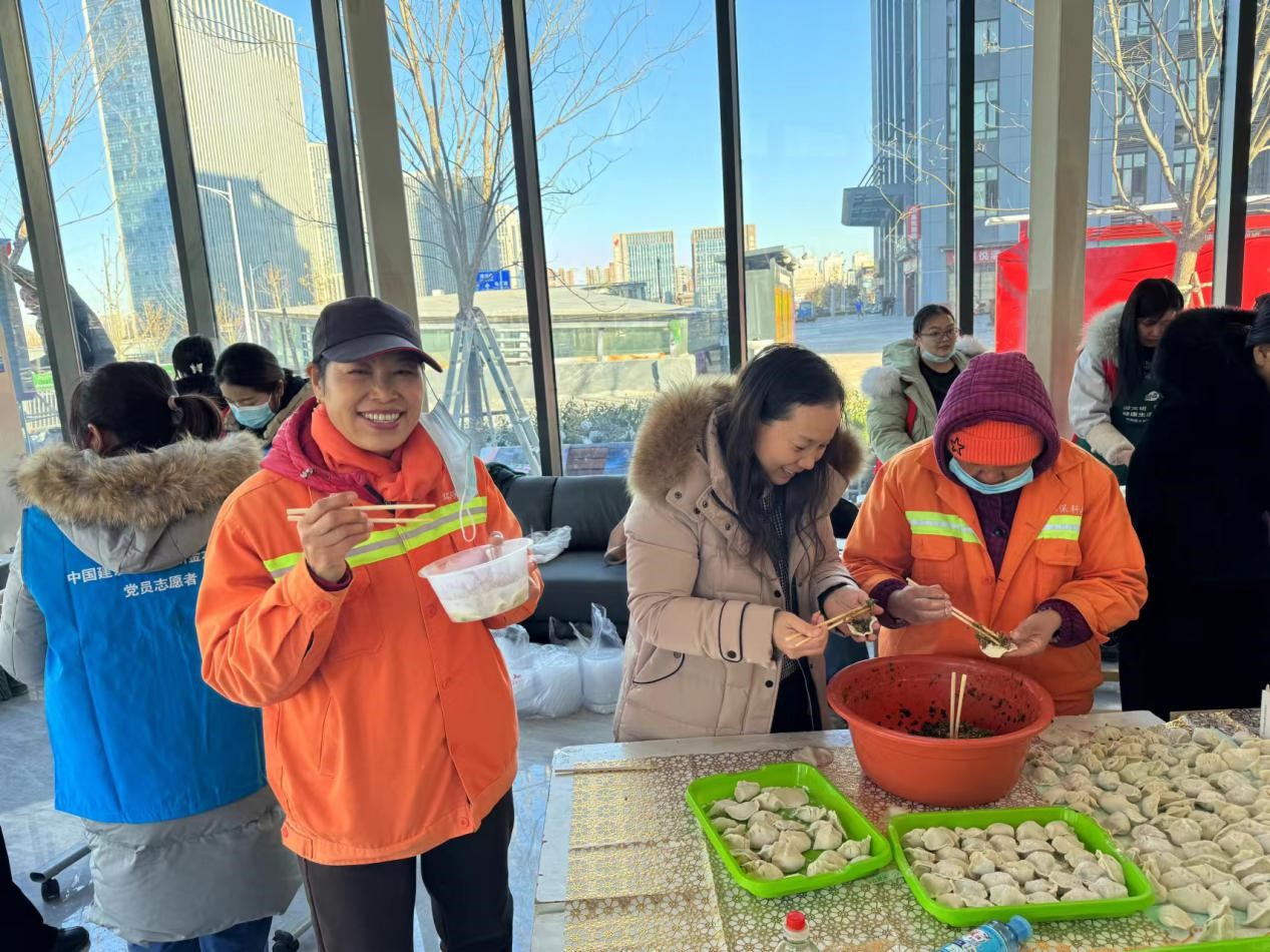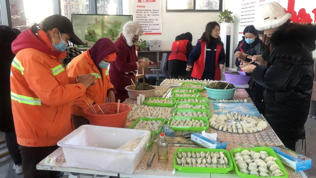 地处高新区科学大道主干道的“百家姓爱心粥”工会驿站,冬至这天既是“免费粥屋”又是“爱心厨房”。这里人流量大,位置突出,周边环卫工人多,冬至佳节来临,工会驿站积极响应高新区总工会关于辖区驿站根据自身实际情况开展形式多样的“送温暖”倡议,以党建引领志愿服务为核心,发动辖区党建志愿者、工会志愿者参与到为户外工作者服务的队伍中,开展“迎冬至•送温暖”送粥包饺子活动。只见大家分工协作,热火朝天的忙碌着,有的和面擀皮,有的切菜剁馅,有的精心为饺子设计造型……驿站内充满欢声笑语,场面十分温馨,热气腾腾的饺子端上桌,也温暖着每名户外劳动者的心。