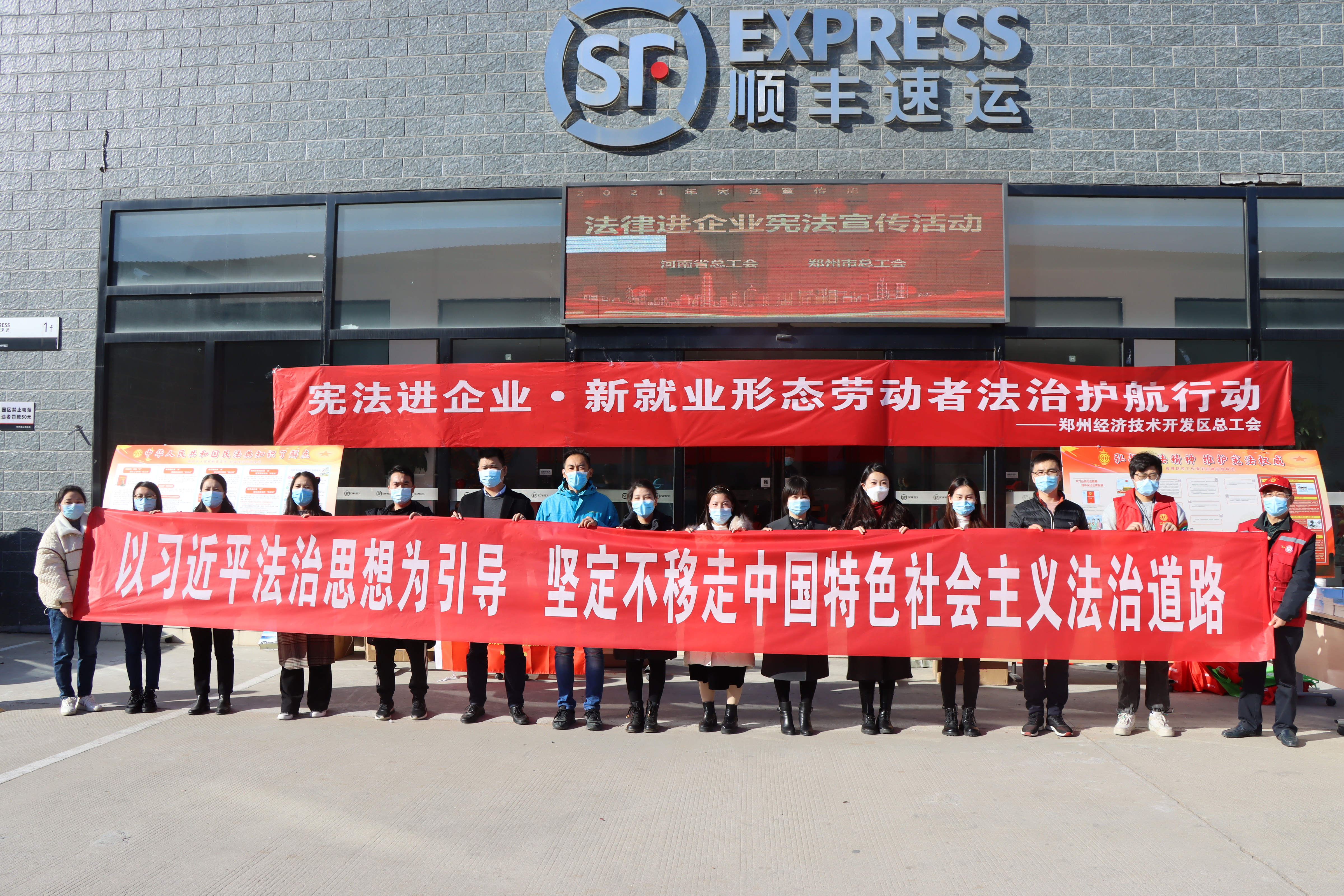 日上午,省总和市总工会在经开区的顺丰速运(郑州总部)开展宪法宣传活动及职工权益维护宣传活动。