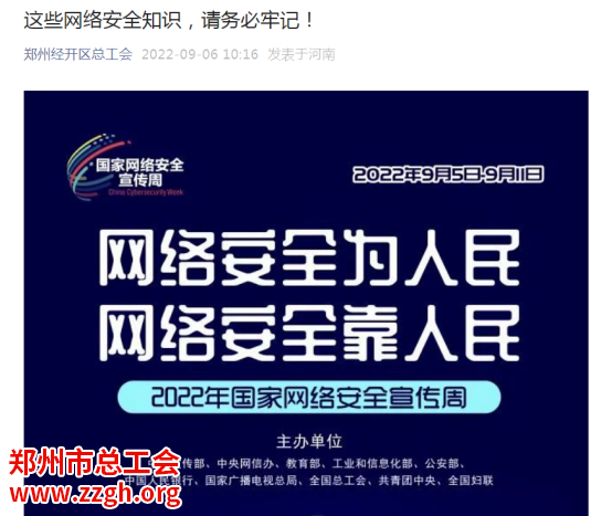 8月下旬,经开区工会广泛宣传发动,发布通知,要求基层工会做好今年9月11日“网络安全为人民 网络安全靠人民”主题日活动。