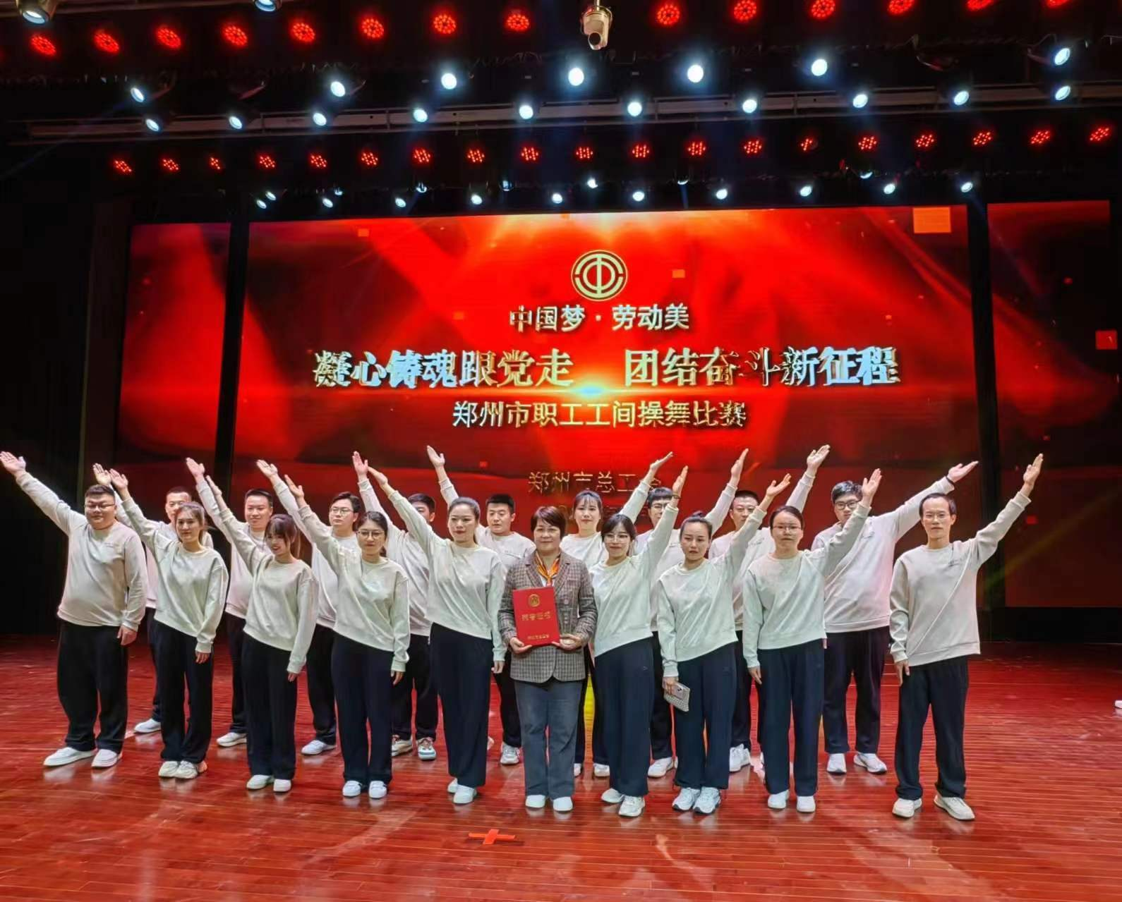 为了深入贯彻落实上级部门的指导思想,进一步增强干部职工的健康意识和身体素质,充分展现环保铁军健康向上、永葆活力的精神风貌。郑州市生态环境局经开分局工会参赛队经推荐申报、专业评审组评定,从61支队伍中入围决赛。代表经开区总工会参加郑州市总工会主办的"中国梦.劳动美-﹣凝心铸魂跟党走 团结奋斗新征程"郑州市职工工间操舞比赛活动。