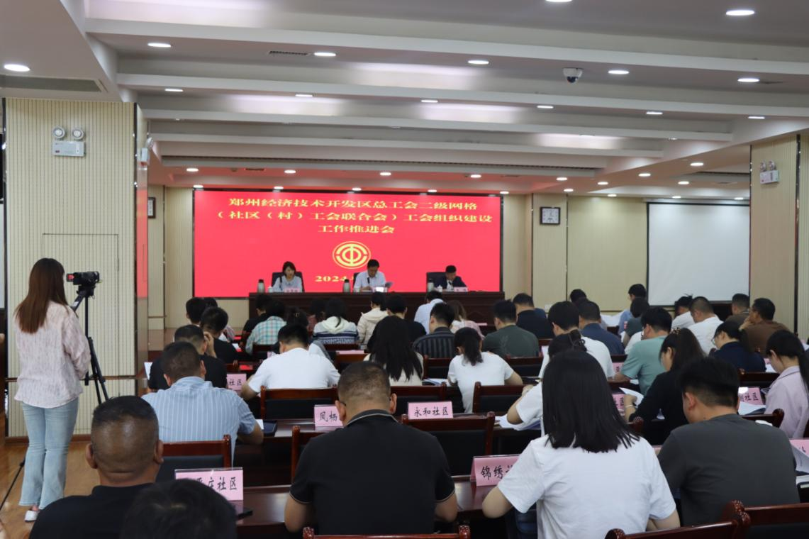 4月25日下午,郑州经济技术开发区总工会召开二级网格(社区(村)工会联合会)工会组织建设工作推进会。会议传达了关于社区(村)工会联合会规范化的相关要求,对经开区社区(村)入建会工作进行动员部署。国际物流园区、综合保税区、六个办事处工会主席以及辖区社区(村)负责人共计90余人参加。经开区总工会主席出席并主持会议。