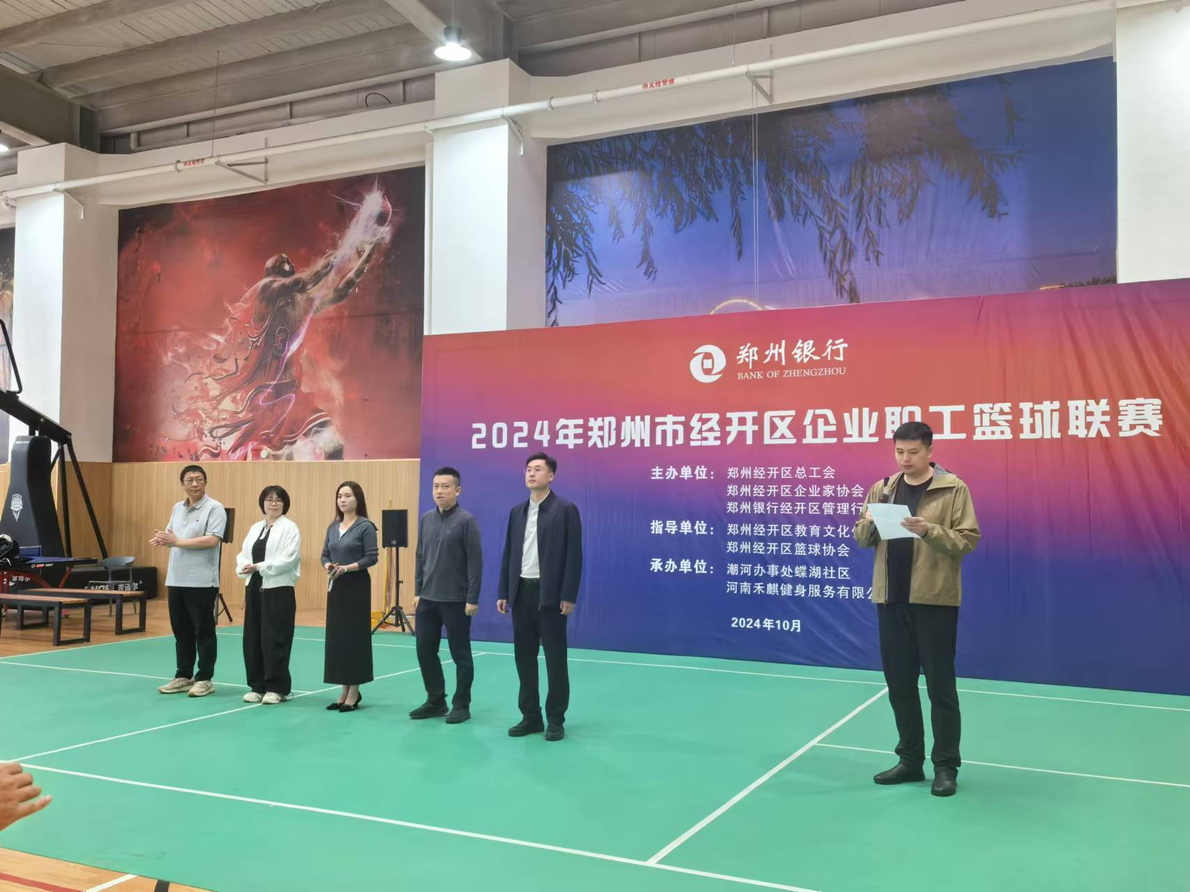 2024 年 10 月 16 日,由郑州经开区总工会、郑州经开区企业家协会、郑州银行经开区管理行主办,郑州经开区教育文化体育局、郑州经开区篮球协会指导,潮河办事处蝶湖社区、河南禾麒健身服务有限公司承办的“郑州银行杯”经开区企业职工篮球联赛正式开幕。