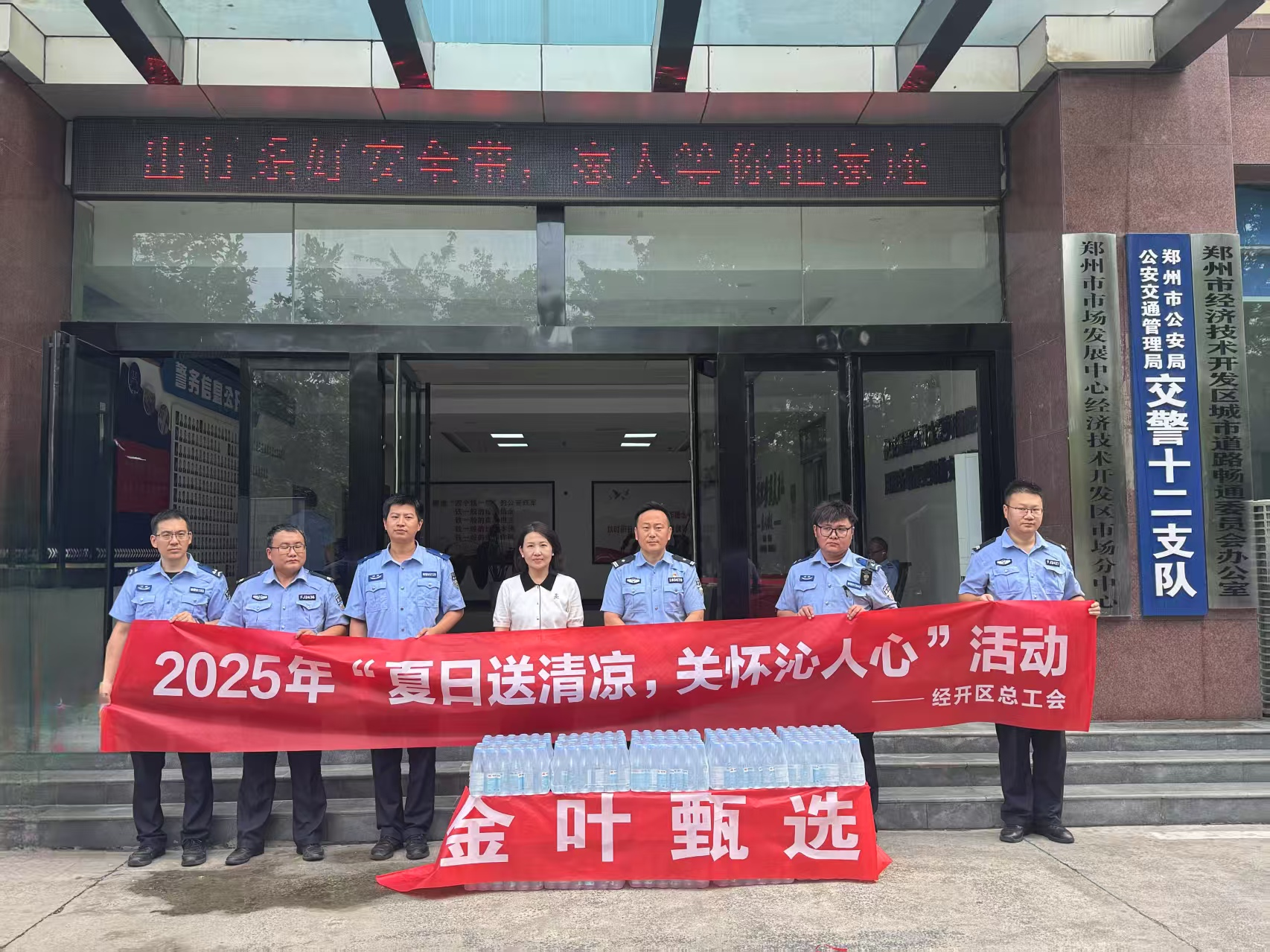 本次活动聚焦奋战于高温一线的特殊群体。经开区总工会组成慰问小组,深入一线,将清凉物资与诚挚问候送到辛勤工作的环卫工人、交通警察、城市管理人员这些户外劳动者手中。活动共惠及十多家单位,累计发放达500余件矿泉水。一箱箱清冽甘甜的矿泉水,承载着工会“娘家人”的牵挂与敬意,化作劳动者身旁触手可及的清凉防线。