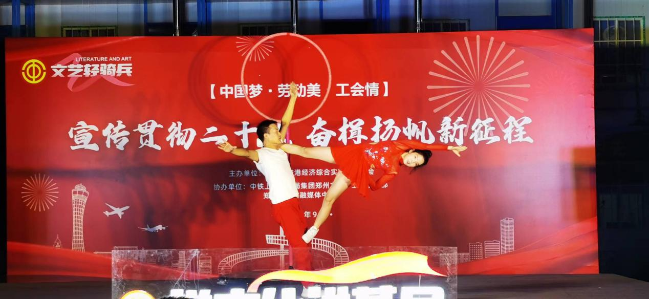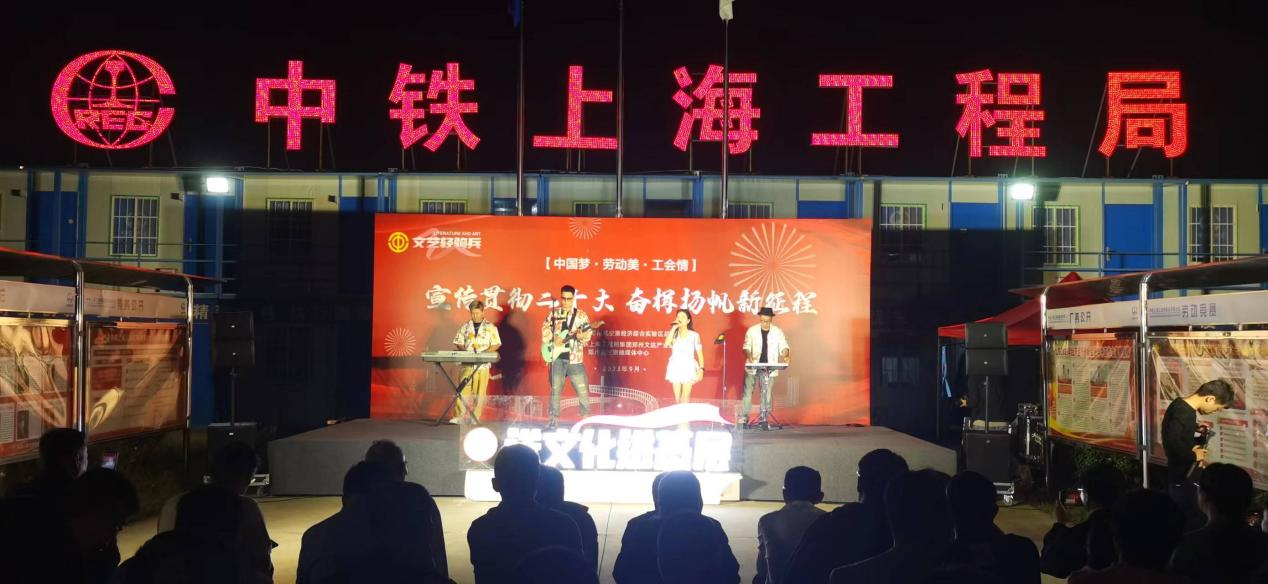 中秋国庆双节前夕,由郑州航空港实验区总工会主办,中铁上海工程局集团郑州文达产业园项目部、郑州航空港融媒体中心协办的《中国梦·劳动美·工会情 宣传贯彻二十大 奋楫扬帆新征程》第八场文艺演出走进郑州航空港区在建的郑州文达产业园工地,郑州航空港实验区总工会“文艺轻骑兵”艺术团各位青年演员为工友们送上了歌曲、舞蹈、相声、杂技等精彩节目,以文化活动的形式送上节日祝福,一同歌颂党的百年光辉,宣传党的二十大精神,展现新时代广大职工群众坚定不移跟党走、昂首奋进新征程的精神风貌。