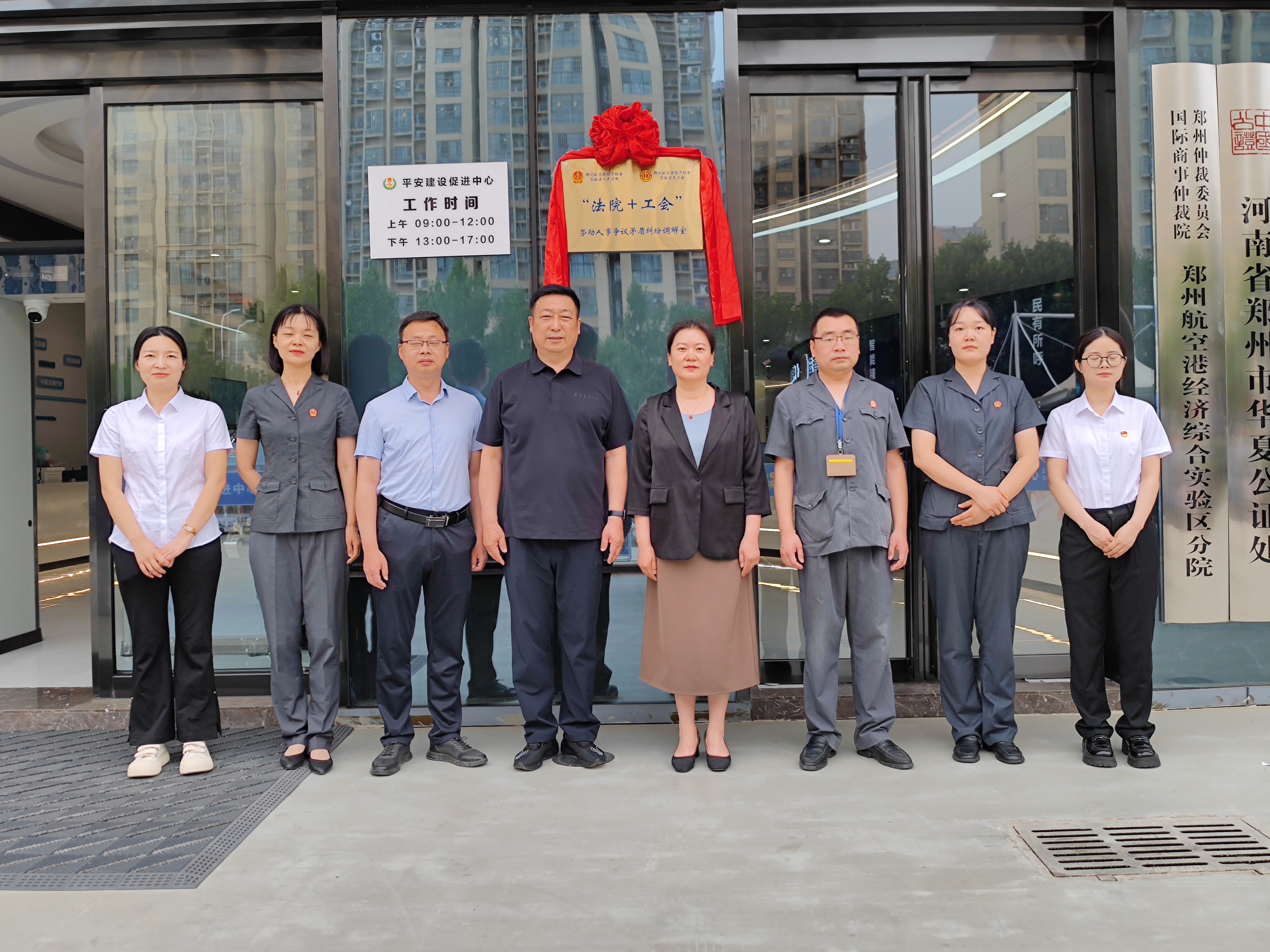 为深入推进劳动争议多元化解机制建设,切实将非诉讼纠纷解决机制挺在前面。6月4日上午,郑州航空港经济综合实验区人民法院与总工会对接设立的劳动人事争议矛盾纠纷调解室揭牌仪式在区平安建设促进中心举行,标志着“法院+工会”劳动争议诉调对接工作机制在航空港区全面启动。人民法院分党组梁超鹏副书记、副院长,党群工作部副部长边防共同参加揭牌仪式。