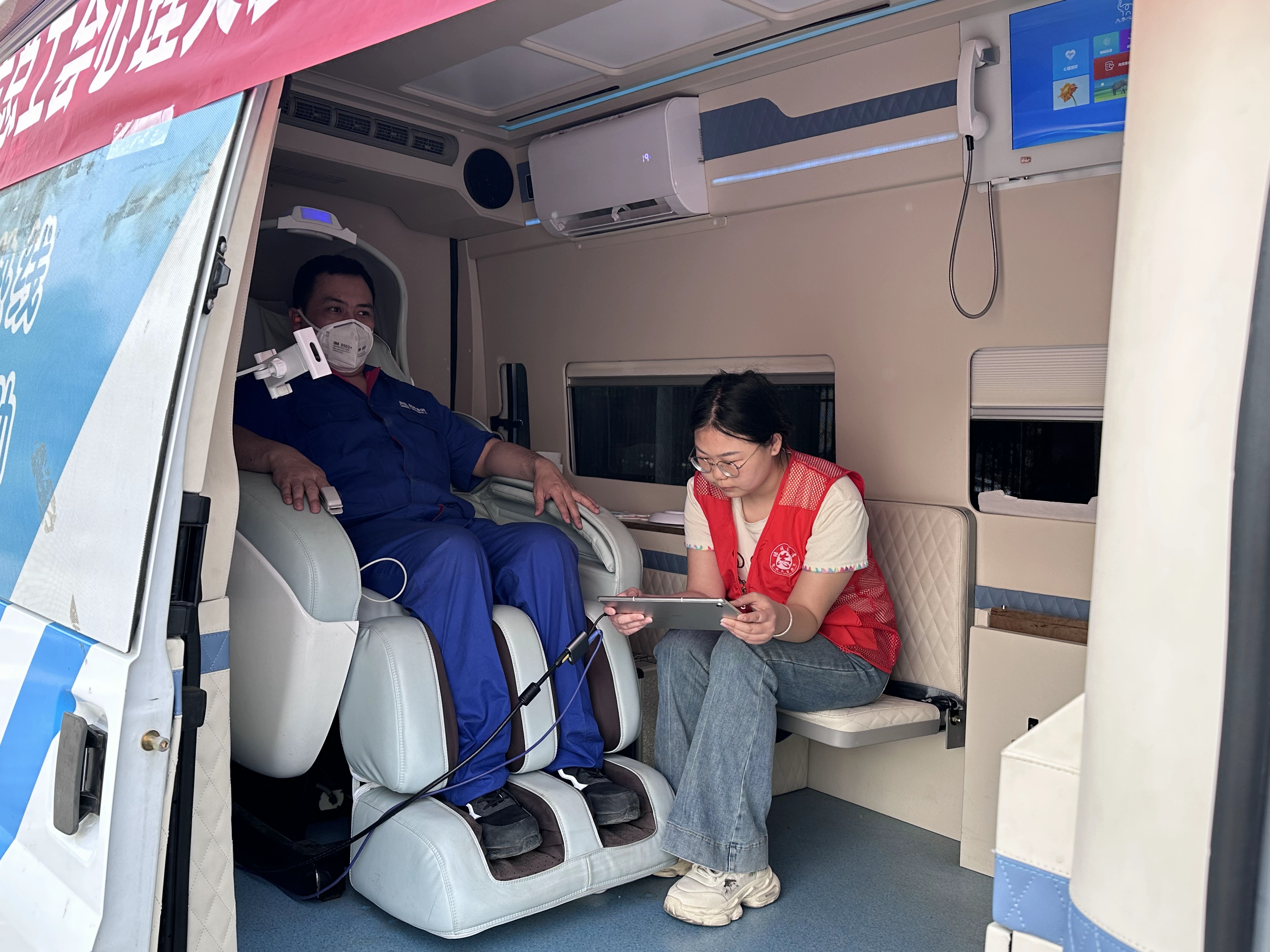 在心理大篷车区域,心理咨询师们通过专业设备为职工们进行心理测评,帮助他们深入了解自身心理状态。心理大篷车中配备了心理健康检测设备,快速分析参与者的情绪状态,生成心理健康监测报告,并提供个性化的心理调节建议。