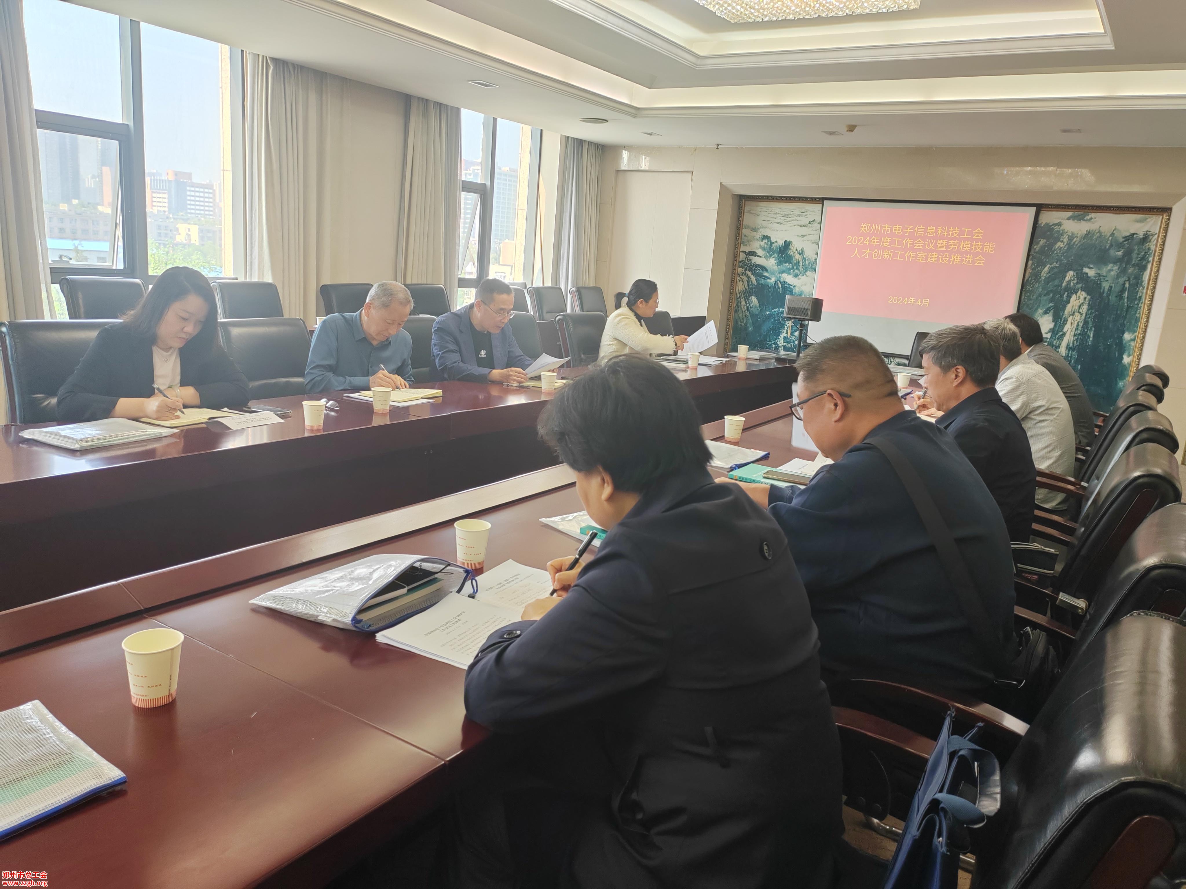 4月12日上午,郑州市电子信息科技工会在市总大楼7楼会议室召开了2024年度工作暨劳模技能人才创新工作室建设推进会议,所属基层工会主席参加了会议,市电子信息科技工会副主任白玉琦主持了会议,市电子信息科技工会主任李国顺参加了会议并做了工作报告。
