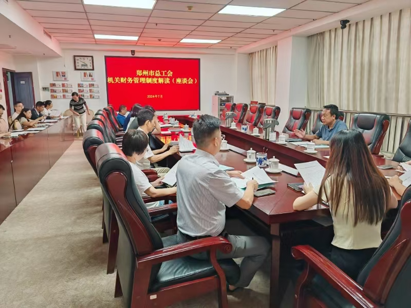 7月30日,郑州市总工会召开机关财务管理制度解读暨座谈会,市总财务部全体人员和各部(处)室、产业工会负责报销事务的人员参加了座谈。