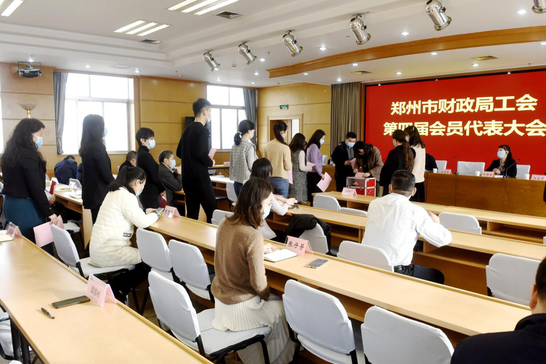 2021年12月15日上午,郑州市财政局工会召开第四届会员代表大会第一次全体会议,市总工会副主席杜建新、市机关工会主任王银仓参加了会议。