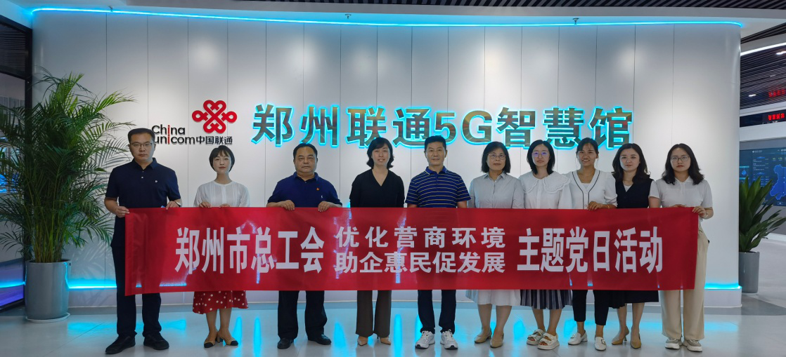 9月22日上午,郑州市总工会党组成员、副主席杜建新带领市总工会网络工作部、职工服务部和市机关工会等党支部,到郑州联通5G智慧馆,开展“优化营商环境、助企惠民促发展”主题党日活动,深入企业一线,面对面开展服务,实打实解决问题。联通政务大客户营销中心总经理王旭鸽参与活动。