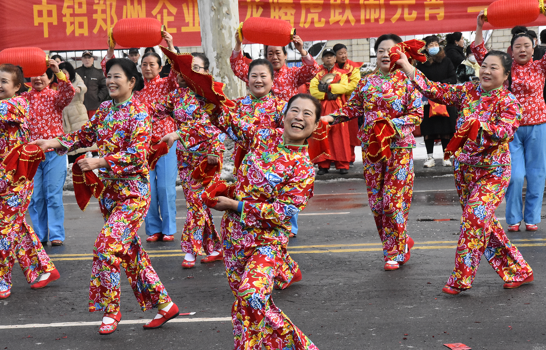 22日上午8点30分,鞭炮声响彻云霄,在红红火火的气氛中,“龙行龘龘盛世春”民间秧歌锣鼓表演大赛拉开了序幕。来自郑州市上街区的多个民间艺术团体和公司离退休职工在公司一号办公楼前为现场观众带来了一场精彩纷呈的文艺演出。活动现场人声鼎沸、锣鼓喧天,演员们冒着严寒,以饱满的热情表演了秧歌、旗袍秀、威风锣鼓等,欢快的节奏,优美的舞姿,引得场下掌声、喝彩声不绝于耳,为观众带来了一场视觉盛宴。整个活动现场,在此刻成了一片欢声笑语的海洋。