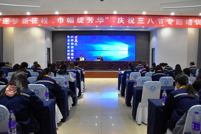 3月6日,由公司工会举办的“逐梦新征程 巾帼绽芳华” “三八”国际妇女节系列活动之专题培训在银都宾馆五楼会议室举行。公司领导高纯生,各单位工会主席与职工代表共计240人参加了培训。