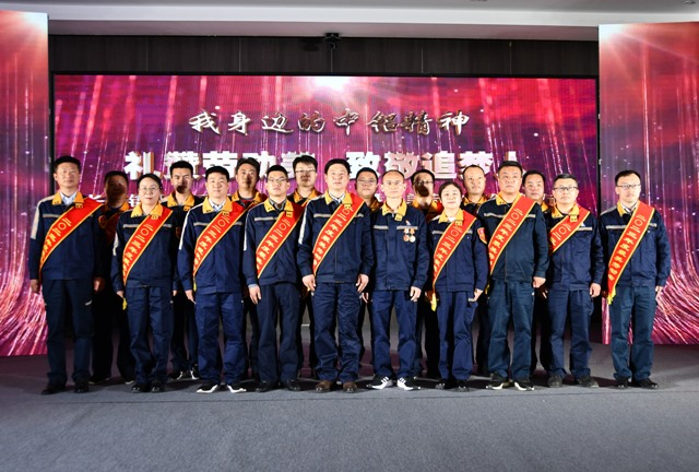 2023 年度公司劳模董红涛、王晓东、杜晨霞、马举分别登台作了“我身边的中铝精神”分享,“中铝大工匠”王永伟与徒弟朱文革登台分享了“师带徒”的经验和感悟。他们通过视频短片和现场讲述的方式分享了各自在岗位上勤奋努力、扎实工作、锐意进取、勇于创新的感人事迹和奋斗故事。一个个奖杯、一本本荣誉证书是对劳模们扎实奋斗实干精神的最高褒奖,响彻会场的掌声,是对他们的最崇高礼赞。他们立足岗位、努力拼搏的先进事迹赢得了现场观众的阵阵掌声和高度赞誉。