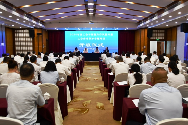 为全面贯彻中国工会十八大会议精神,认真学习习近平总书记关于工人阶级和工会工作的重要论述,进一步提高基层工会干部的业务水平和工作能力,努力建设一支高素质的工会干部队伍,7月15日,长城铝业工会2024年度工会干部能力作风提升暨工会劳动保护专题培训在长城饭店正式开班。长城铝业党委副书记、工会主席高纯生出席开班仪式并讲话。公司各单位工会主席、经审主任、女工委主任、工会干事、劳动保护监督委员会成员等工会干部100余人参加培训。