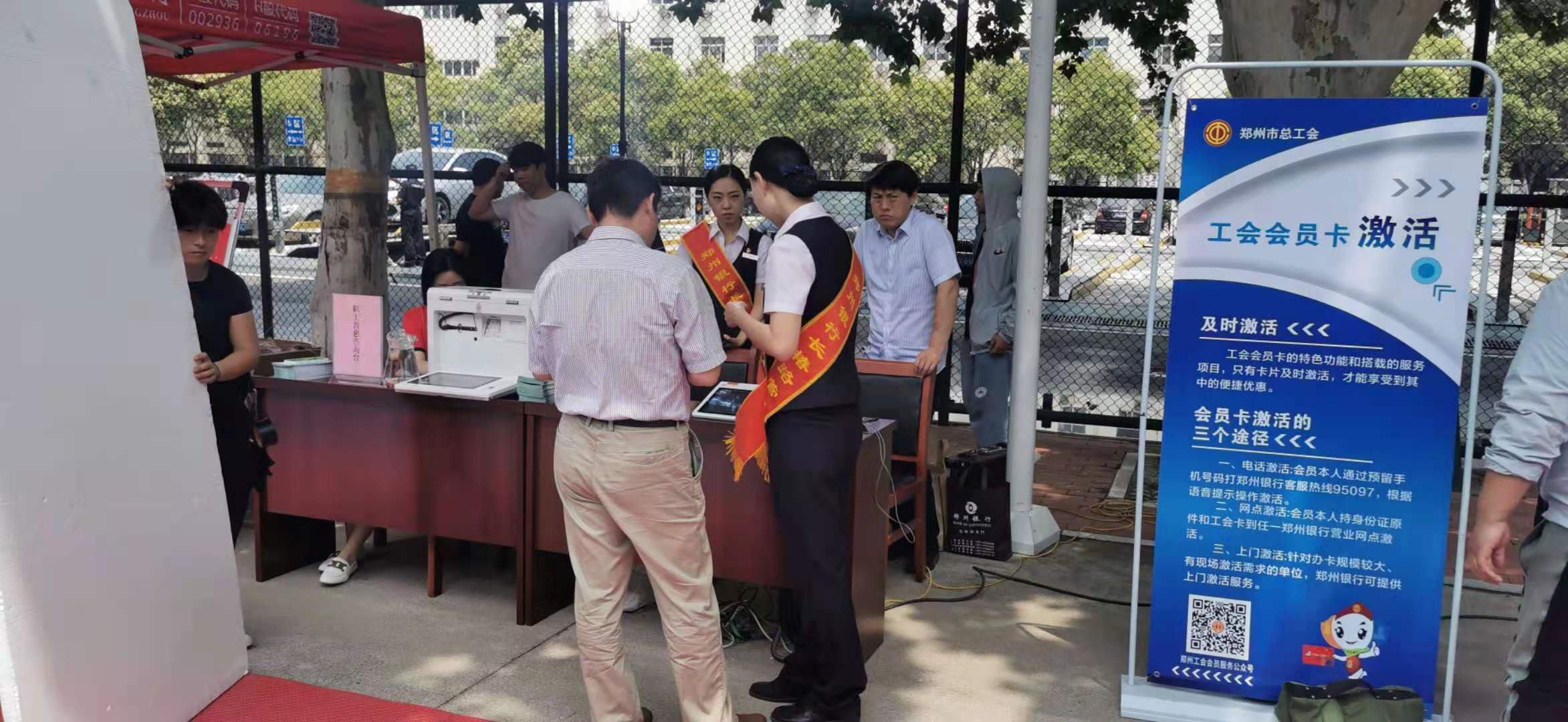 郑州银行工作人员为机关干部激活工会会员卡
