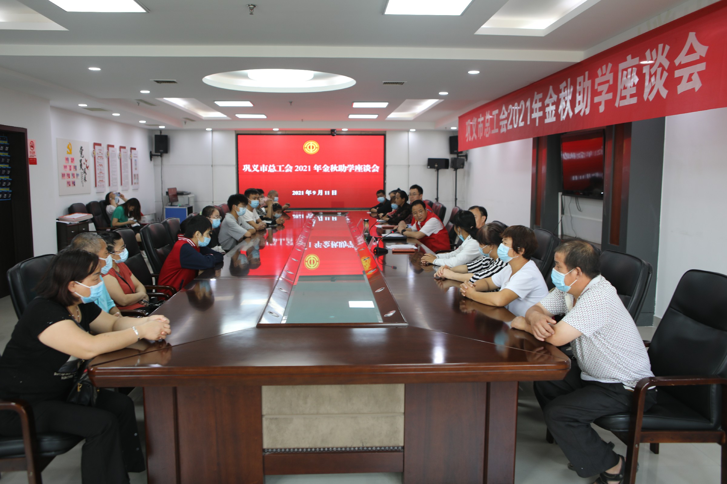 为贯彻落实党的十九大精神、践行习近平新时代中国特色社会主义思想、着力关注民生、关爱学子,帮助困难职工解困脱困,落实省总2021年“五大行动”“十件实事”,进一步做好常态化困难职工帮扶工作,解决困难职工家庭子女上学难问题。9月11日上午,巩义市总工会在三楼会议室召开2021年金秋助学座谈会。巩义市总工会党组书记范钦伟,党组副书记、副主席周杰、职工服务中心主任刘海涛参加座谈。