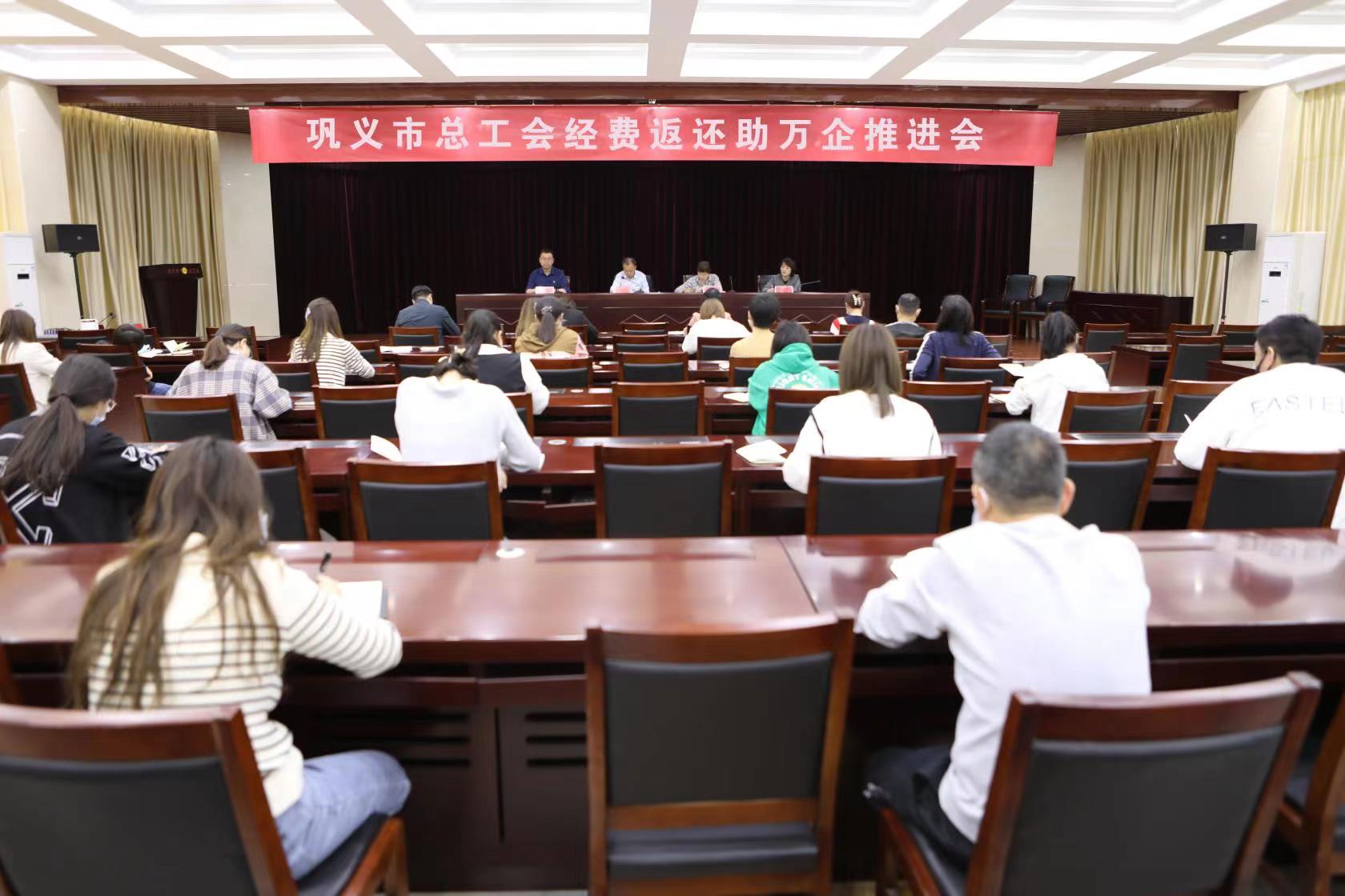 市总工会把推进落实小微企业工会经费支持政策作为年度重点工作,统筹谋划推进,助力我市经济发展。为贯彻落实市委七届二次全会精神,动员全市工会干部在“十大行动”中建功立业,4月13日上午,市总工会召开巩义市经费返还助万企推进会。市总工会党组副书记、副主席周杰主持会议。