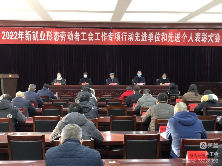 2022年,巩义市总工会以习近平新时代中国特色社会主义思想为指导,深入学习贯彻党的二十大精神、习近平总书记关于工人阶级和工会工作的重要论述,在市交通运输局、市市场监督管理局、市邮政管理局等单位配合下,新就业形态劳动者工会工作取得了新进展新成绩。为进一步总结经验、肯定成绩、鼓励先进, 1月17日上午,在巩义市总工会二楼会议室召开了2022年新业态工会工作专项行动先进单位和先进个人表彰大会,用先进典型的进取精神和榜样力量,引导激励动员广大职工群众奋进新征程、建功新时代。巩义市总工会班子成员、相关街道、各职能部门的领导,相关受表彰的先进单位、先进个人代表等70余人参加会议,会议由巩义市总工会党组副书记、副主席周杰主持。