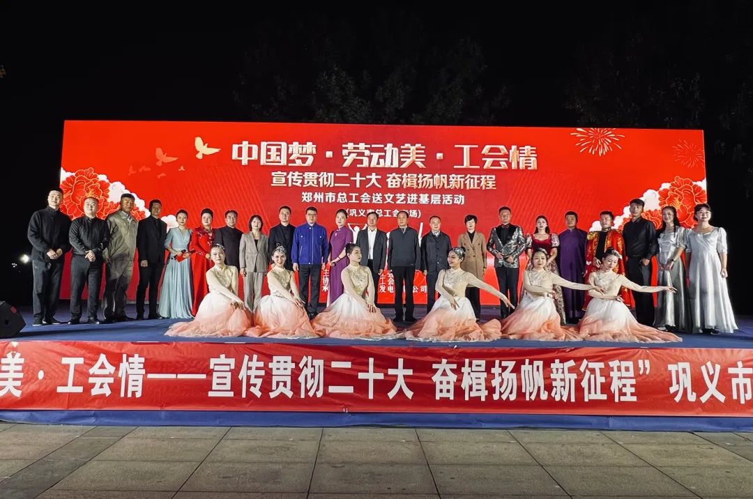 10月12日晚,“中国梦·劳动美·工会情——宣传贯彻二十大·奋楫扬帆新征程”庆祝中华人民共和国成立74周年,2023郑州市总工会送文艺进基层慰问演出之巩义市总工会专场,在巩义市民文化广场举行。郑州市总工会宣教部副部长陈红松、网络工作部副部长赵晓红,巩义市人大常委会副主任、市总工会党组书记、主席范钦伟,巩义市委宣传部副部长孙中才,大唐巩义发电有限责任公司党建工作部吴建华,巩义市总工会党组副书记、副主席周杰及班子成员与新就业形态劳动者群众等上百人参加活动。